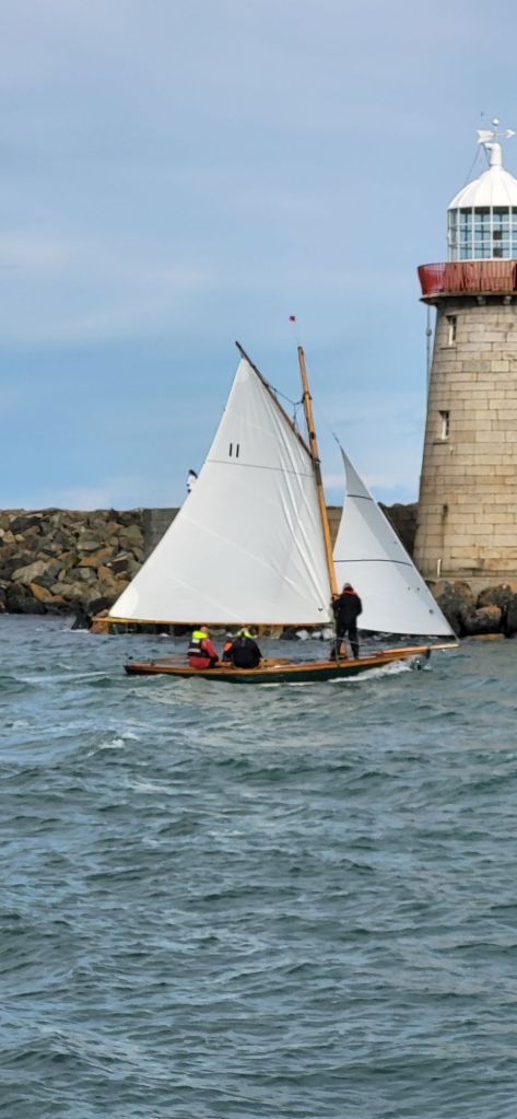 …from Malahide, where we were subject to crane failures and 4 days of gales blowing through, to Carlingford Lough where we waited for yet another gale to blow across, up to Glenarm in a long leg which caught up our schedule, the careful planning for Rathlin sound with its awesome tides and waves, to Ballycastle and finally this last stunning leg to Coleraine with the dolphins.