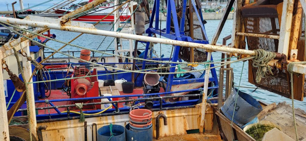 …and the dockside is lined with fishmongers, fish restaurants and the most amazing hardware/chandlery. It’s a struggle to get John out, but we replace a tired fender which gets some quizzical looks on the train…