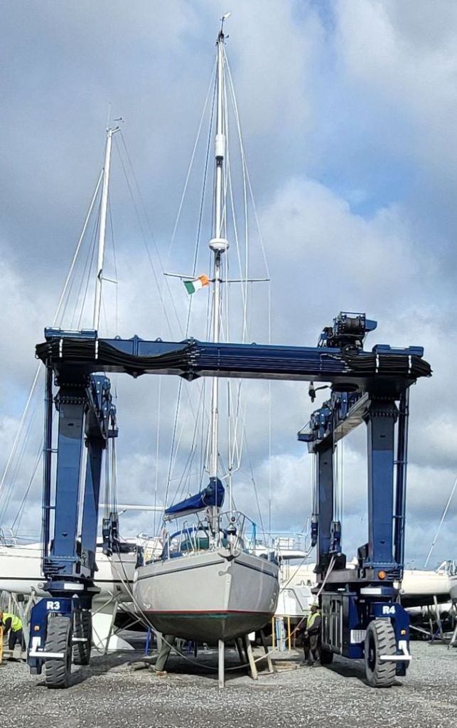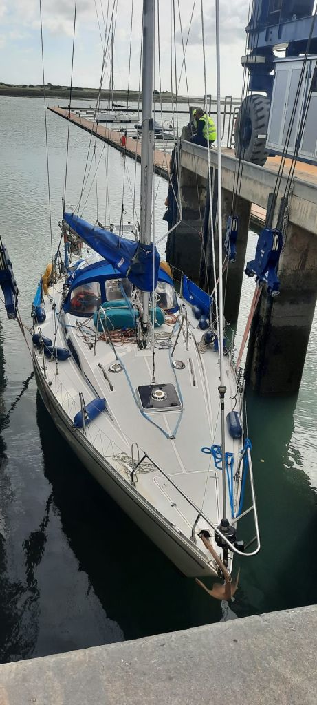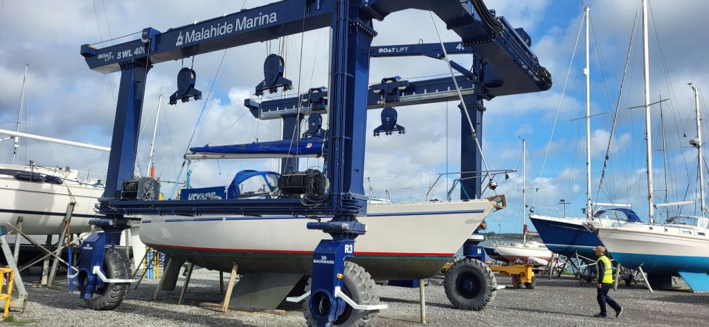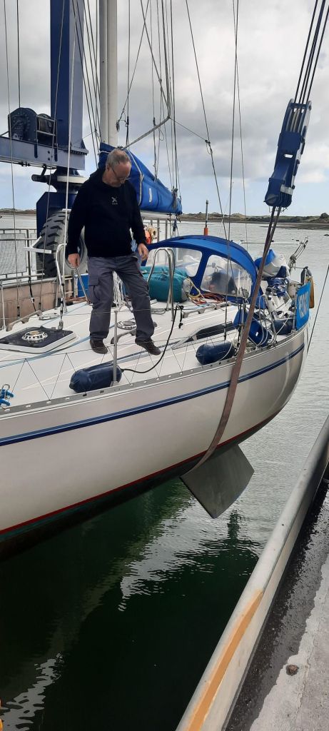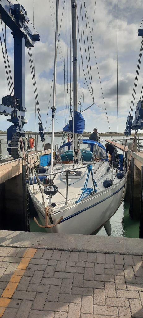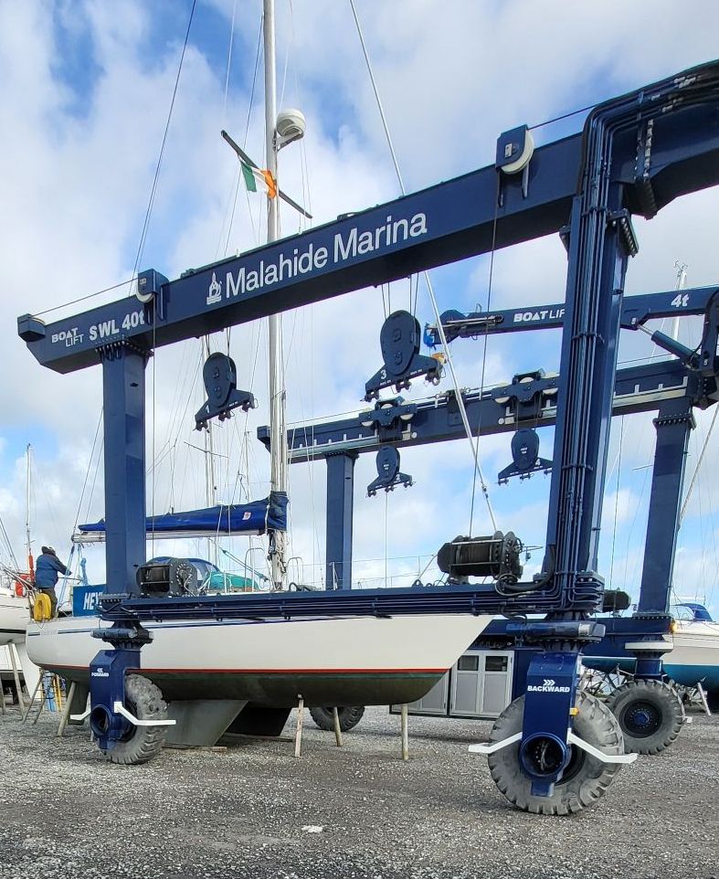 She was due to be lifted back in on Wednesday, but the hoist promptly failed, requiring a specialist part from Italy. Therese, the manager in the yard at Malahide was brilliant at keeping us up to date, but with flights already booked, three of us decided to head back to Ireland anyway, ready to make a getaway once the part arrived (for Chris, the lure of quality time with grandchildren was a bigger draw). With Heydays still on dry land the yard made arrangements for us to have access so we can stay on board…albeit having to traipse out to the loos. They also organised for the night watchman to let us in, with ladder access to the old girl.