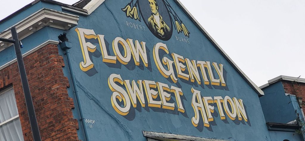 There’s an old tobacco and stuff factory, and we wonder at the art work writing. Apparently the line is from Robbie Burns, his link with Dundalk is that his sister lived here, and the company, searching for a name for a new cigarette called it Sweet Afton…