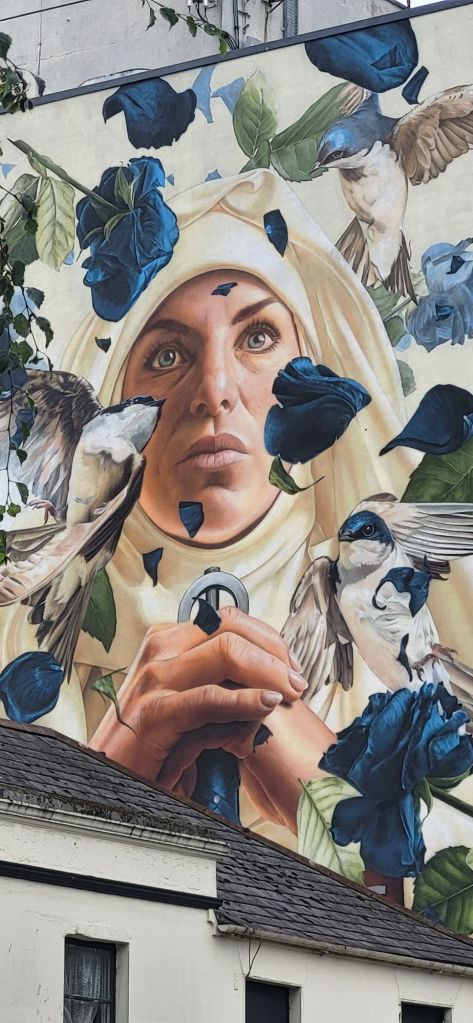 We’re immediately taken, by the extraordinary amount of murals and street art, all created by different artists, and telling real or imagined stories of Dundalk….