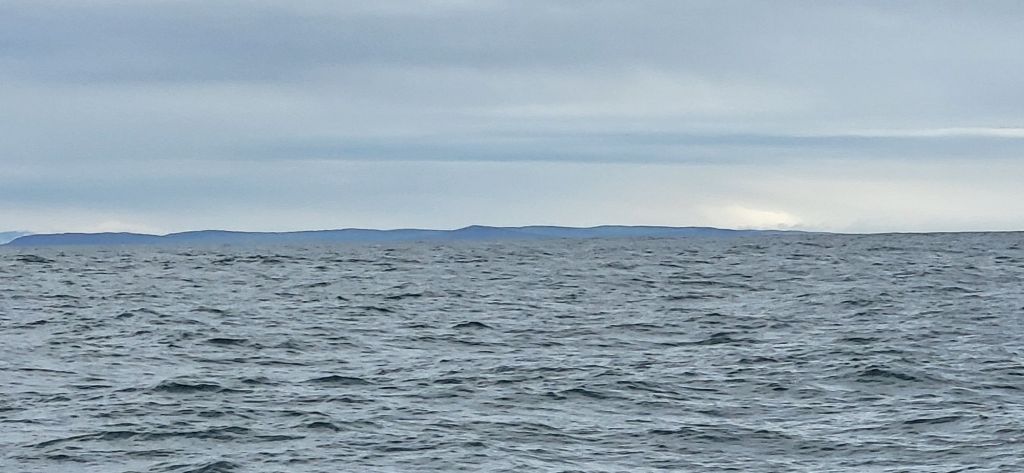 The coast line is grey and uninviting for photo opportunities, but we pass the South Rock lighthouse, and then as the visibility improves, we find ourselves able to see four different territories…The Isle of Man, The Irish Republic, Ulster, and Scotland’s Mull of Galloway….even though they are mostly grey smudges above a grey sea.