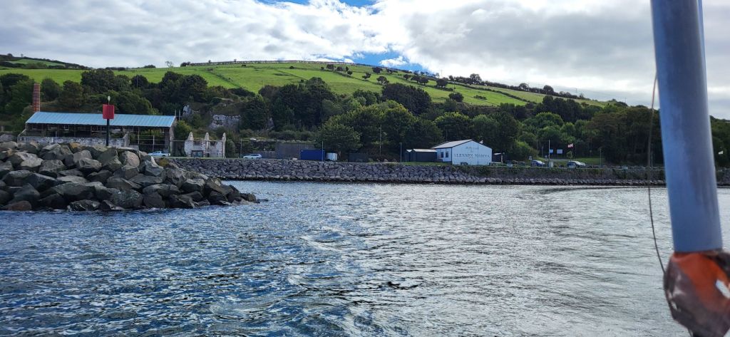 The Irish Republic was simply amazing for both the welcome and the scenery with the last leg to Malahide being in almost dead calm. With Heydays ashore and a break at home, we return to a broken hoist delaying being put back in the water…and another 4 days of gales blowing through. With a deadline of today to get back home, we spent less time exploring than we had originally planned, but even then we had to hang around in Carlingford Lough, waiting for the next weather window. A long hop all the way to Glenarm got us back on track….and another 2 days in harbour waiting for the northerlies to blow through.