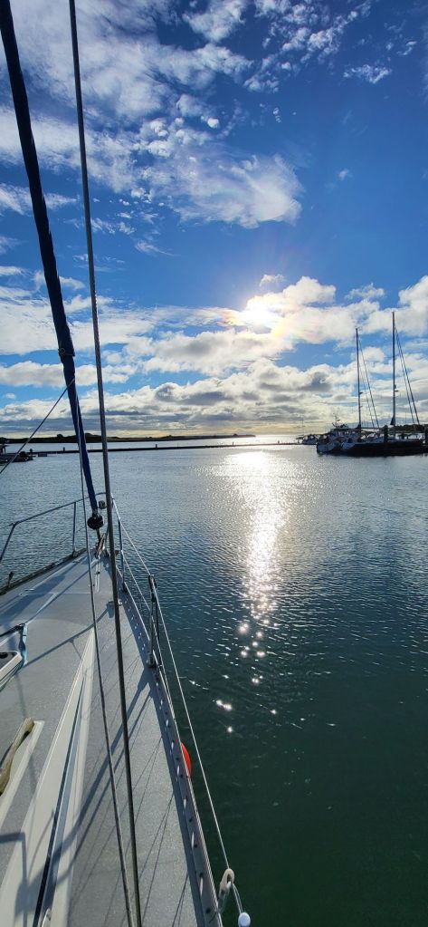 We have re routed halliards and sheets to prevent chafe, we’ve eaten the last of the perishables (chocolate and biscuits are perishables, right?) and we even had time to say hello to Terry the landlord at the Queens Arms.