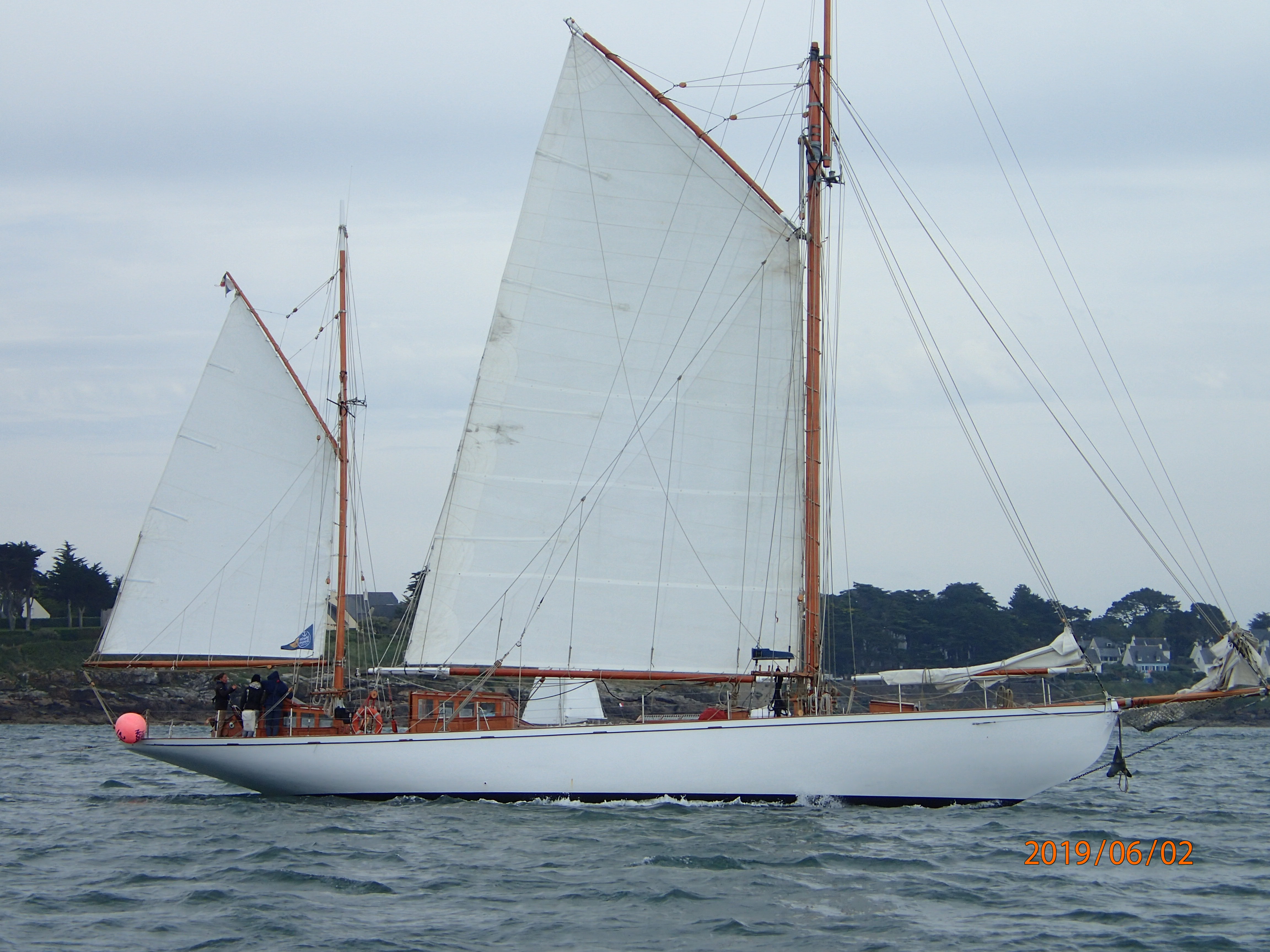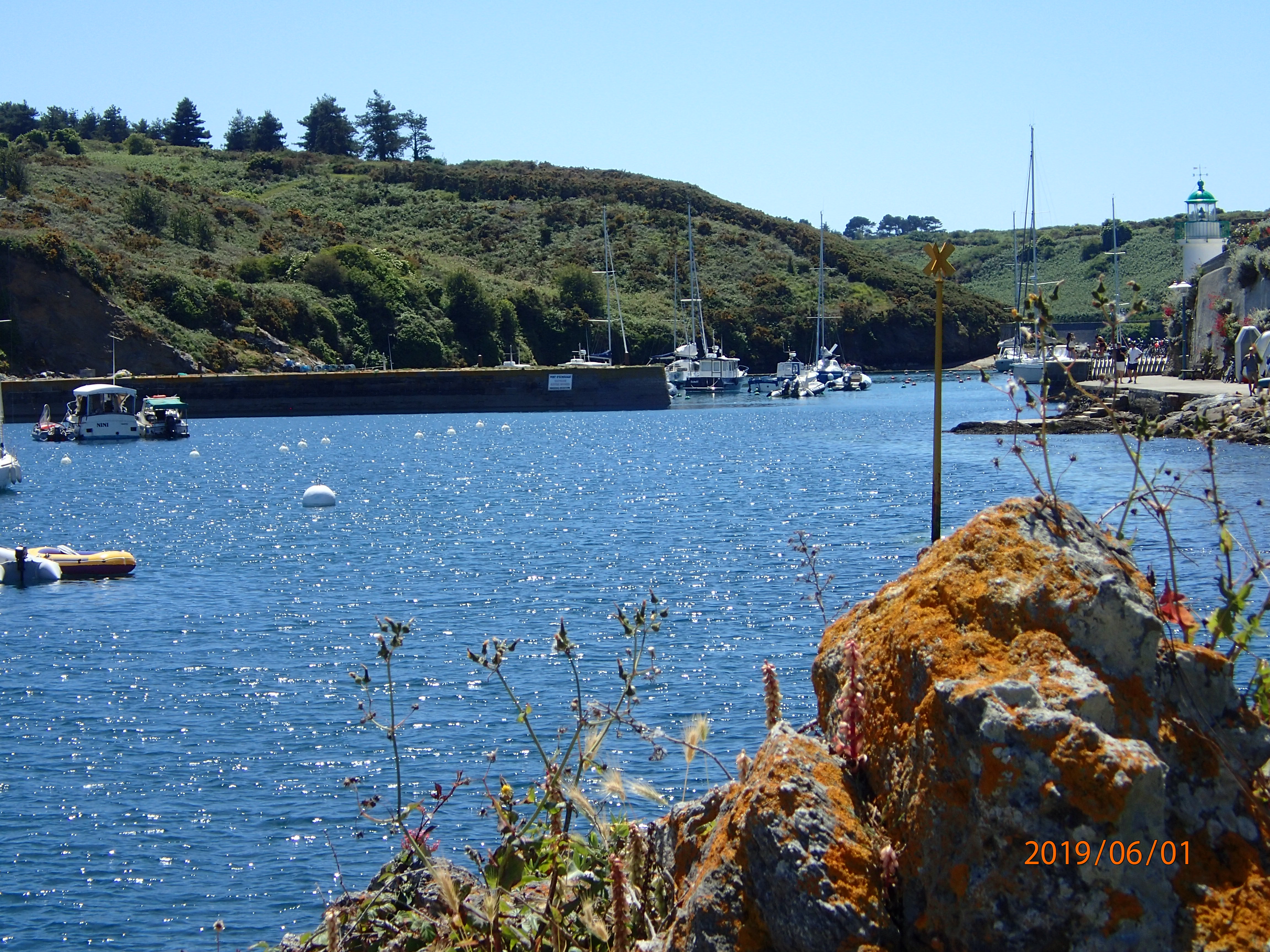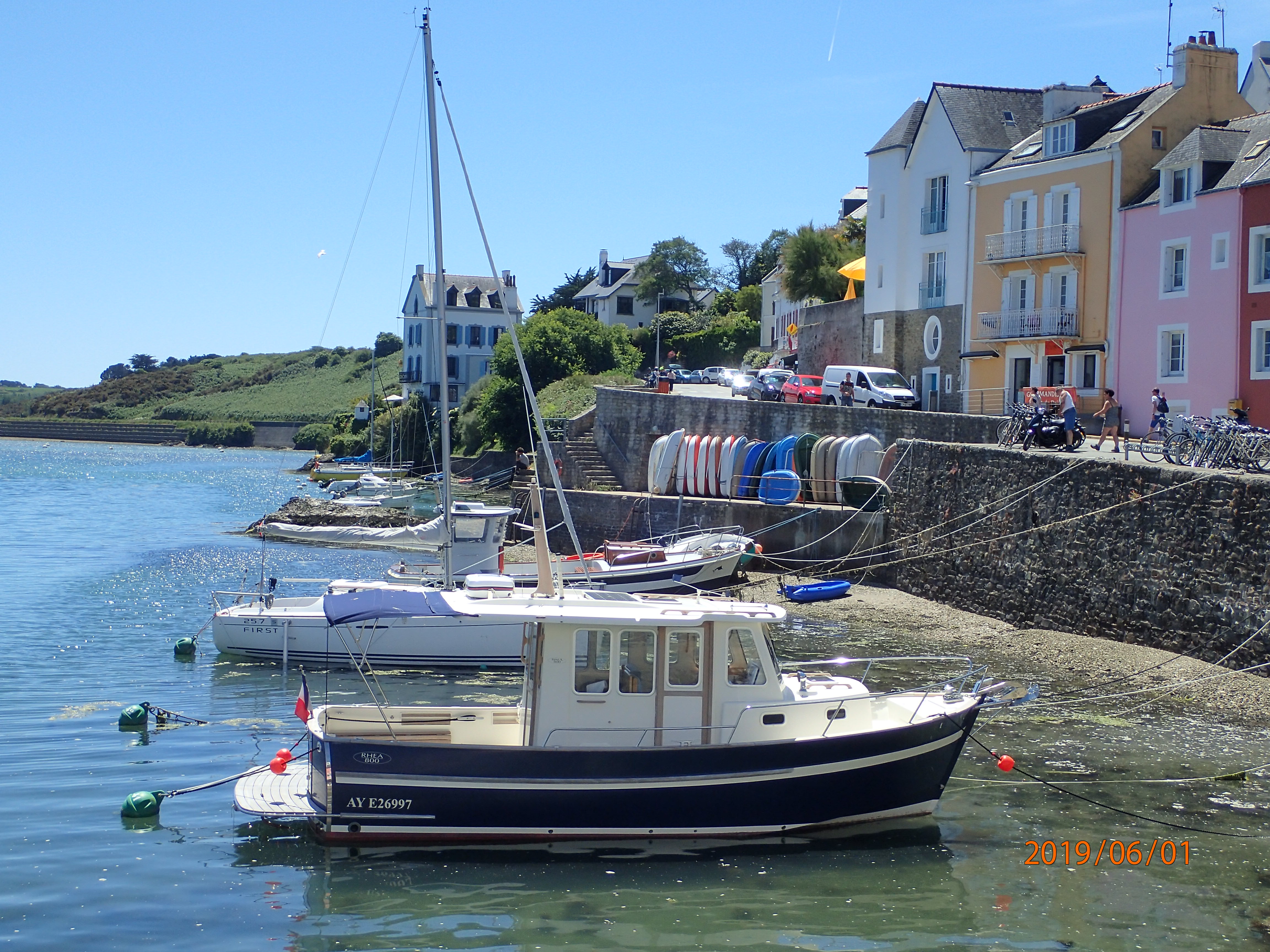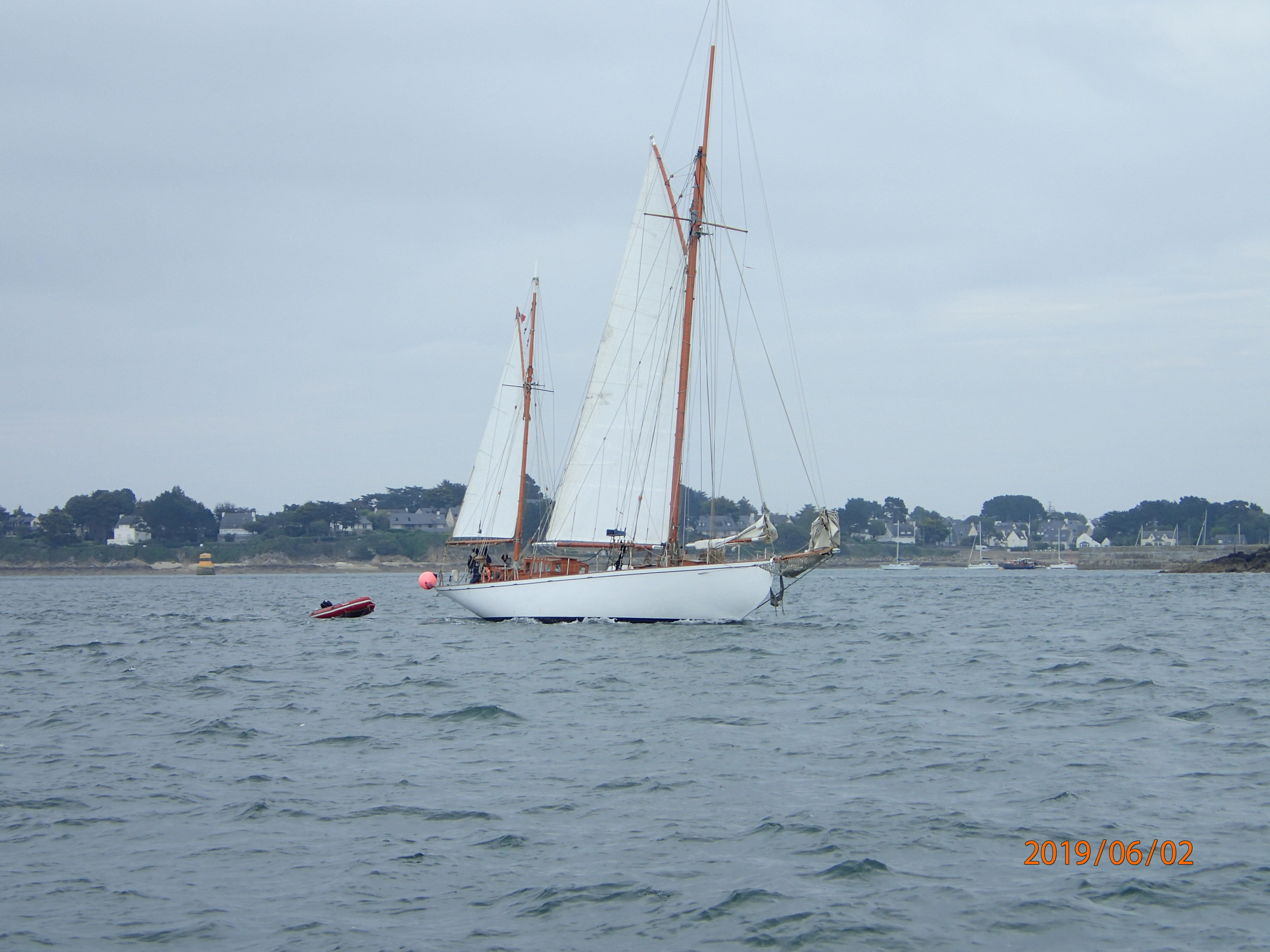The day is overcast, but with a steady 8-10kts from just over the port quarter we join what seems like half the French nation out on the water. In some respects this is a bit like the Solent on a bank holiday, but….everyone is sailing. We have mentioned this before, but the French seem not to have fallen under the spell of Sunseekers and penis extensions in the same way that many Brits have. The Solent on a Sunday is not exactly quiet, with big motor boats powering up and down in a hurry to get…where? We like to think of ourselves as an island seafaring nation, but when it comes to sailing the French seem to be much more egalitarian and, dare we say, less snobbish. There are still lots of young people/couples in small (8-10m) sailing boats. Certainly, moorings and upkeep seem a lot cheaper here compared to the south coast of England. It all seems more akin to the more northern and eastern parts of Scotland…brilliant.