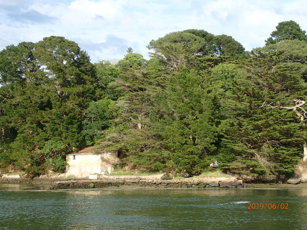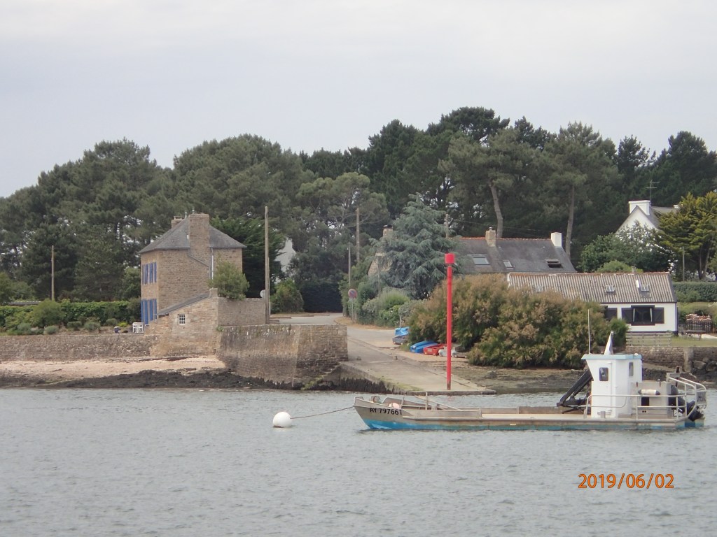 We dog-leg through the Passage de Teignouse…one of many through the string of rocks and small islands running off from the Quiberon peninsular. We count off the buoys as we get swept into the Gulf proper and on up the Auray river.