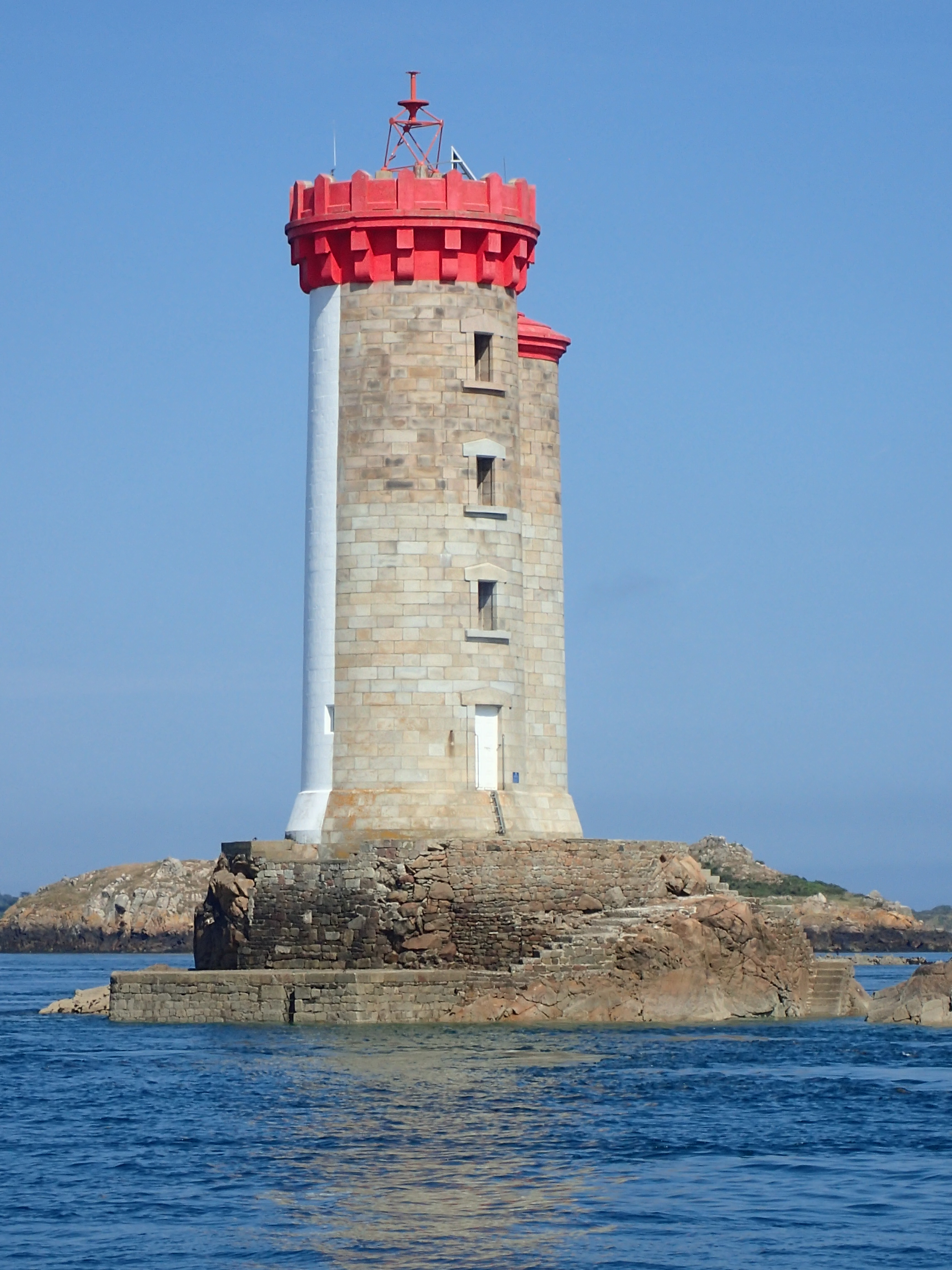 Down the channel the wind was gusty and there was a nasty chop, which to those of us used to sailing in the Solent is nothing (almost). Alderney and indeed any land came and went as the visibility closed down one minute and then lifted the next. The steady procession of boats gradually dispersed as the day went on and we rounded Cap de la Hague with a steady SW F5/6, which, despite having wind with tide raised a nasty little chop which threatened our soup! The rain held off, but we eyed the clouds over Cherbourg with suspicion. The outer forts take on a particularly foreboding attitude in this weather…