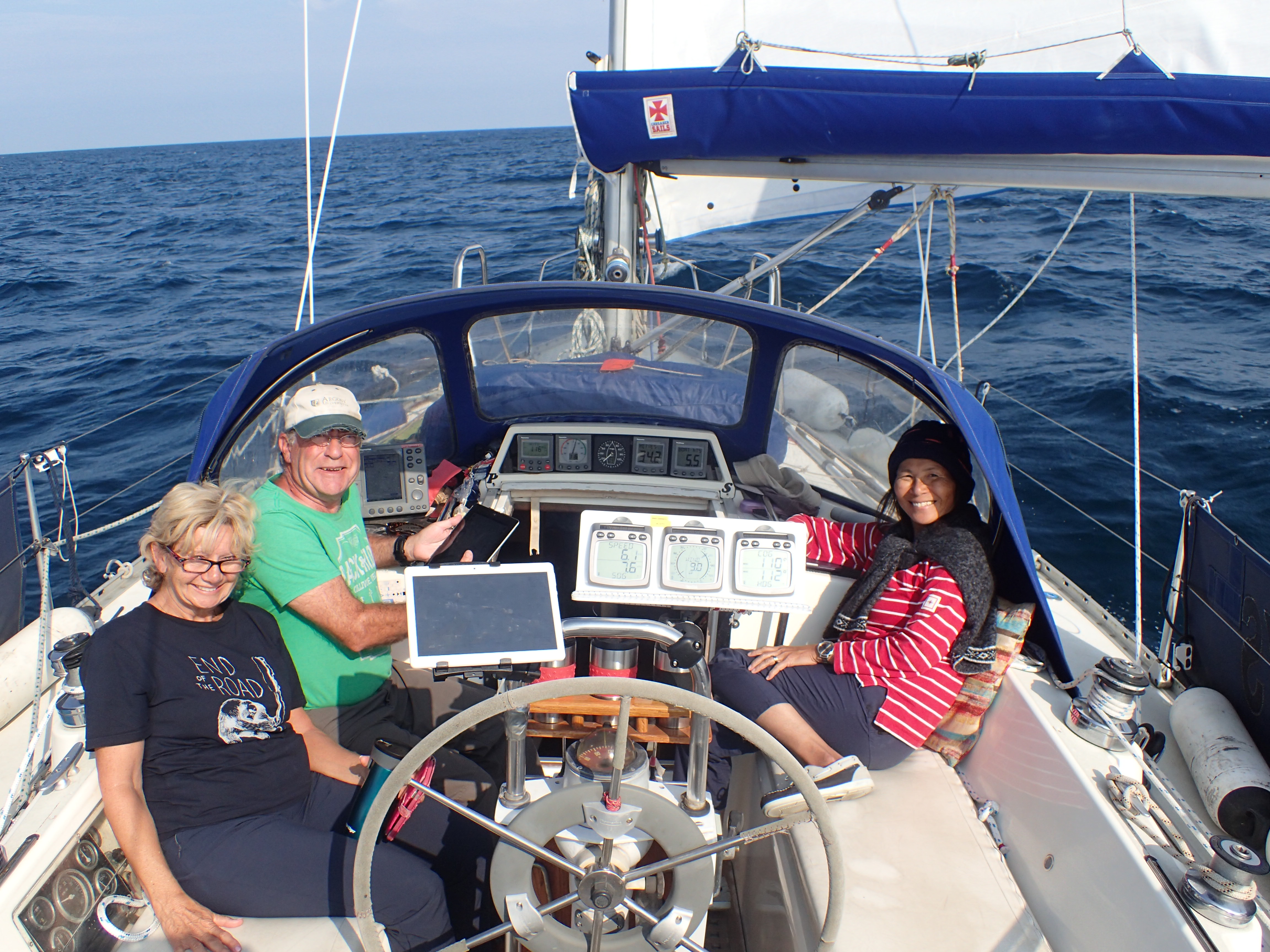 We usually put in a reef or so at night and this was no exception if we want our female company on future crossings. With 2 reefs in the main and two in the genny, Heydays was making an easy 6 to 6.5kts. The only thing to disturb the peace was a very busy eastbound shipping lane and a large tanker crossing it on a very similar course to us. We have not seen such a large ship doing this before and it was momentarily alarming as it seemed to be altering course to go behind some boats…just like us!