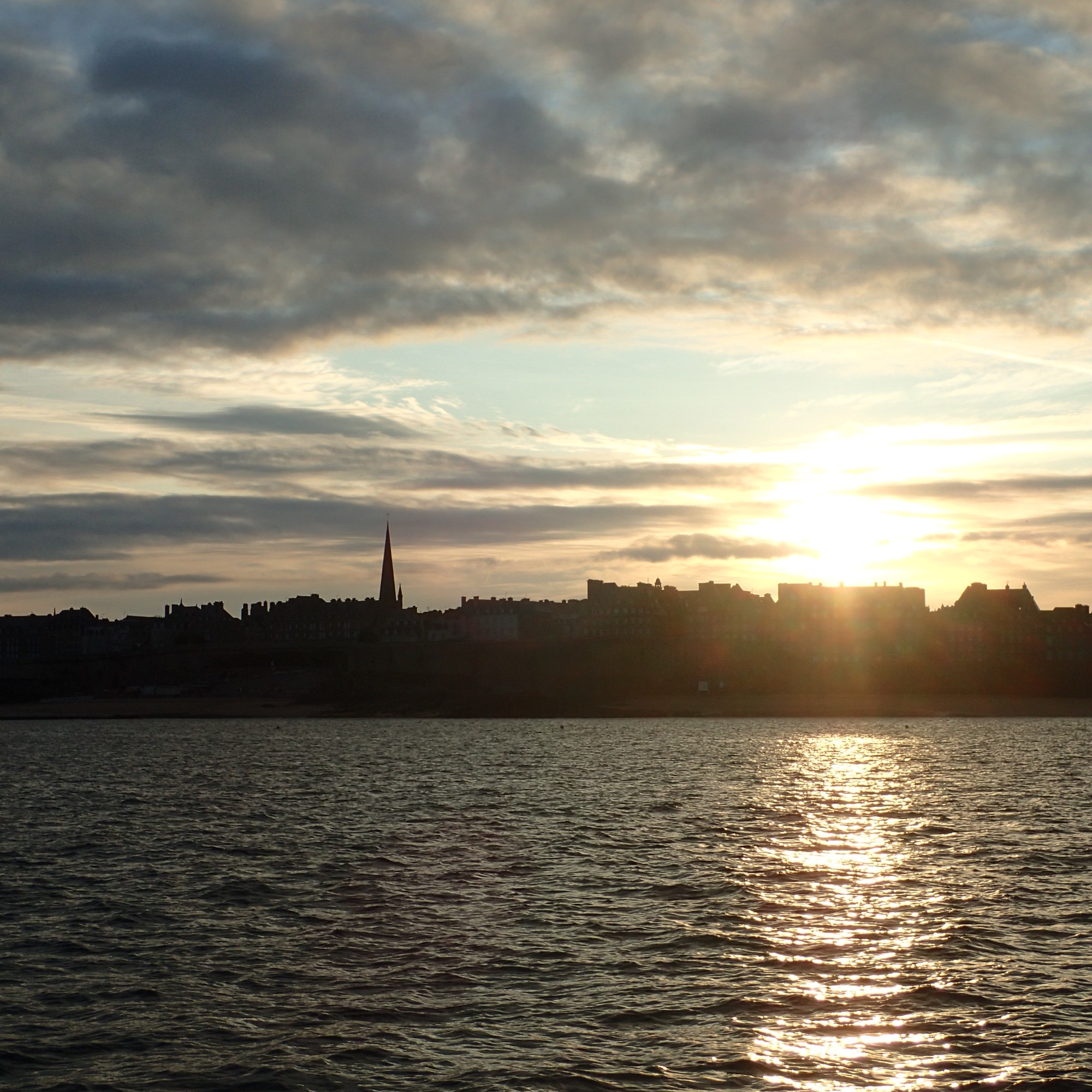 With the wind now easing to no more than F4 with only occasional gusts of 19 or 20kts we decide to leave in the last of the light and maybe even get most of the way across the eastbound shipping lane before darkness sets in completely. Chris and Yee Tak had both been considering going home on the ferry, but stuck with us on this occasion with the promise of a lovely beam reach in a decreasing wind. We slipped our mooring and left France with real sadness but were treated to a fine sun going down over the old harbour…