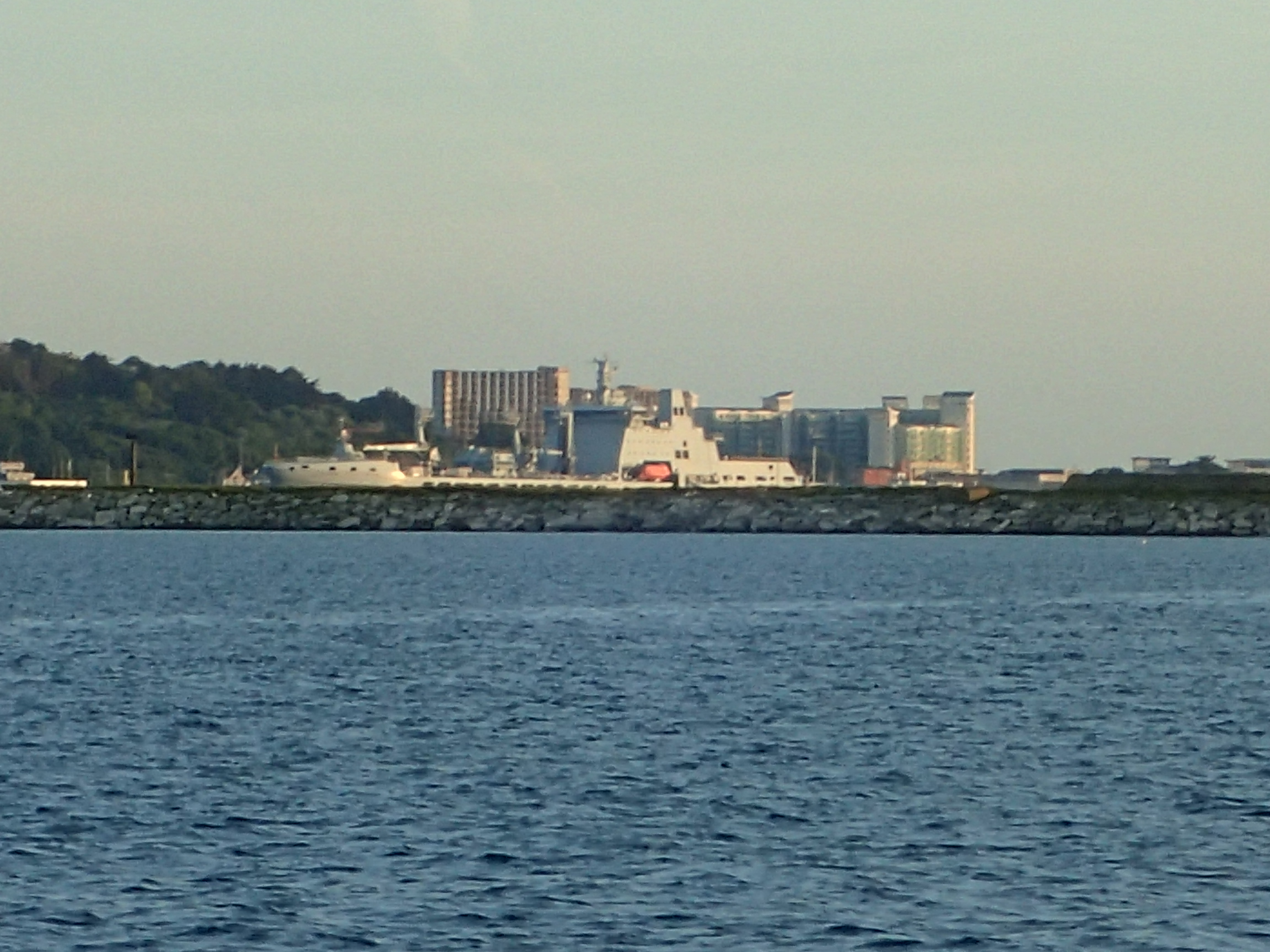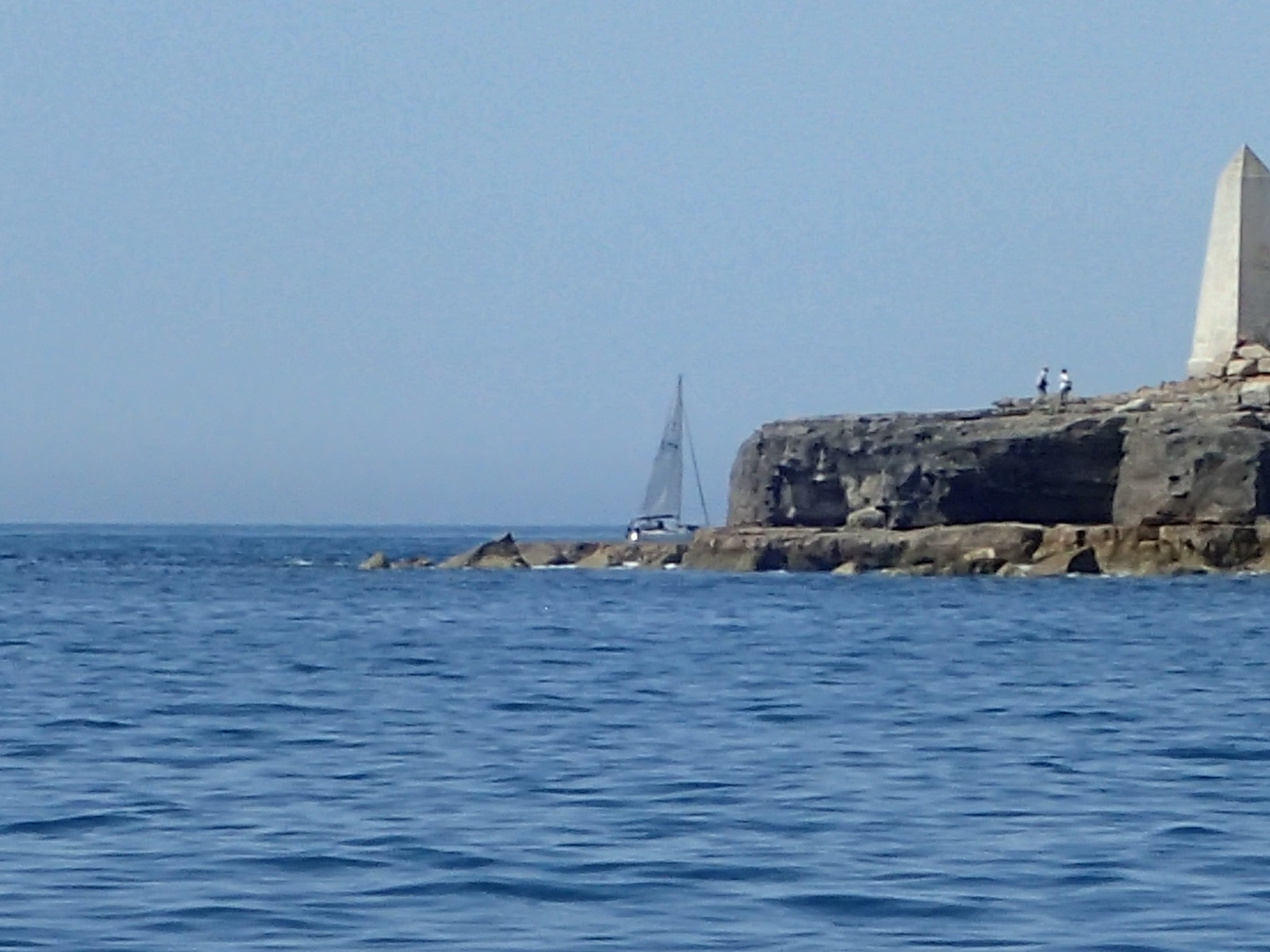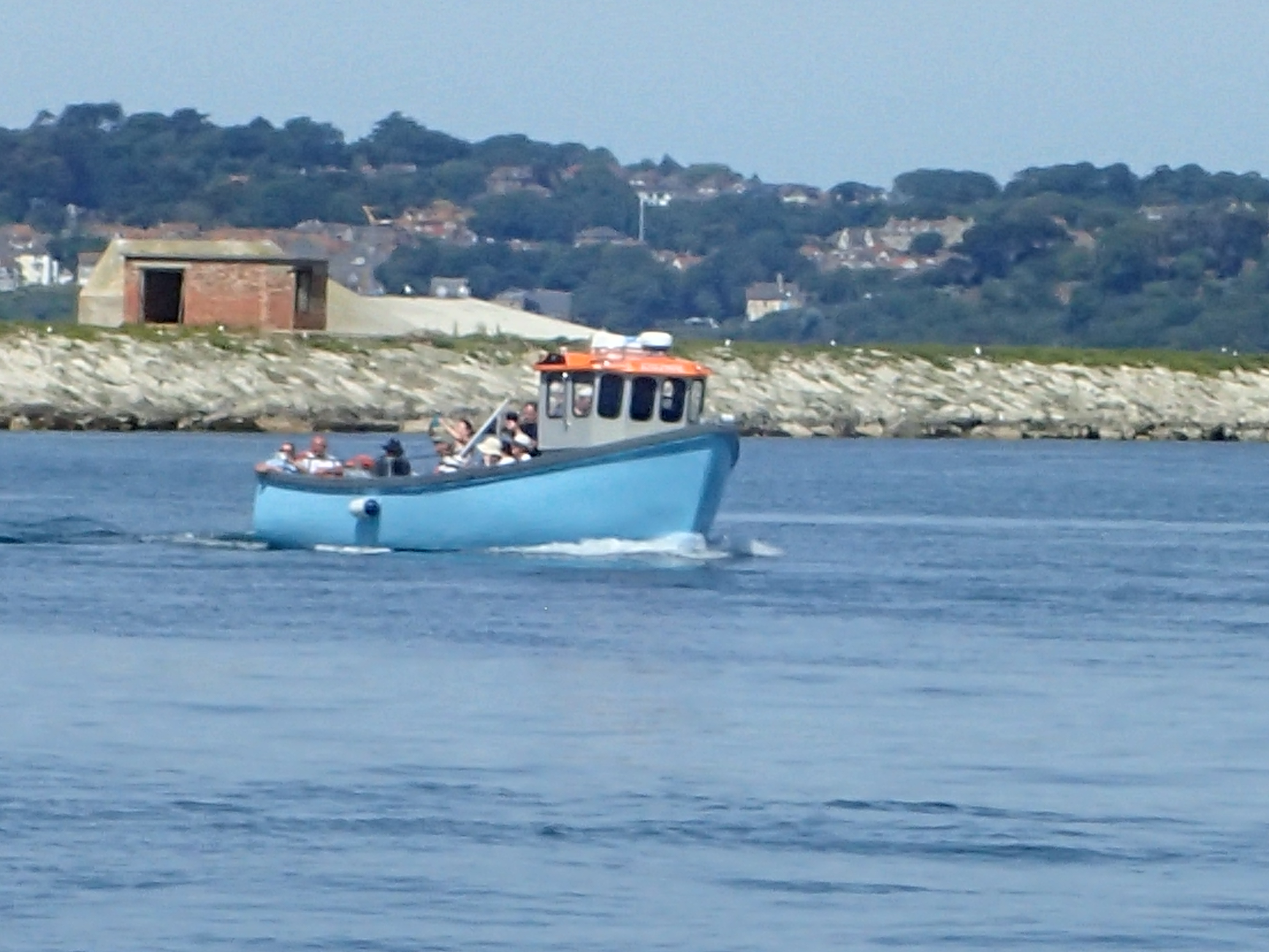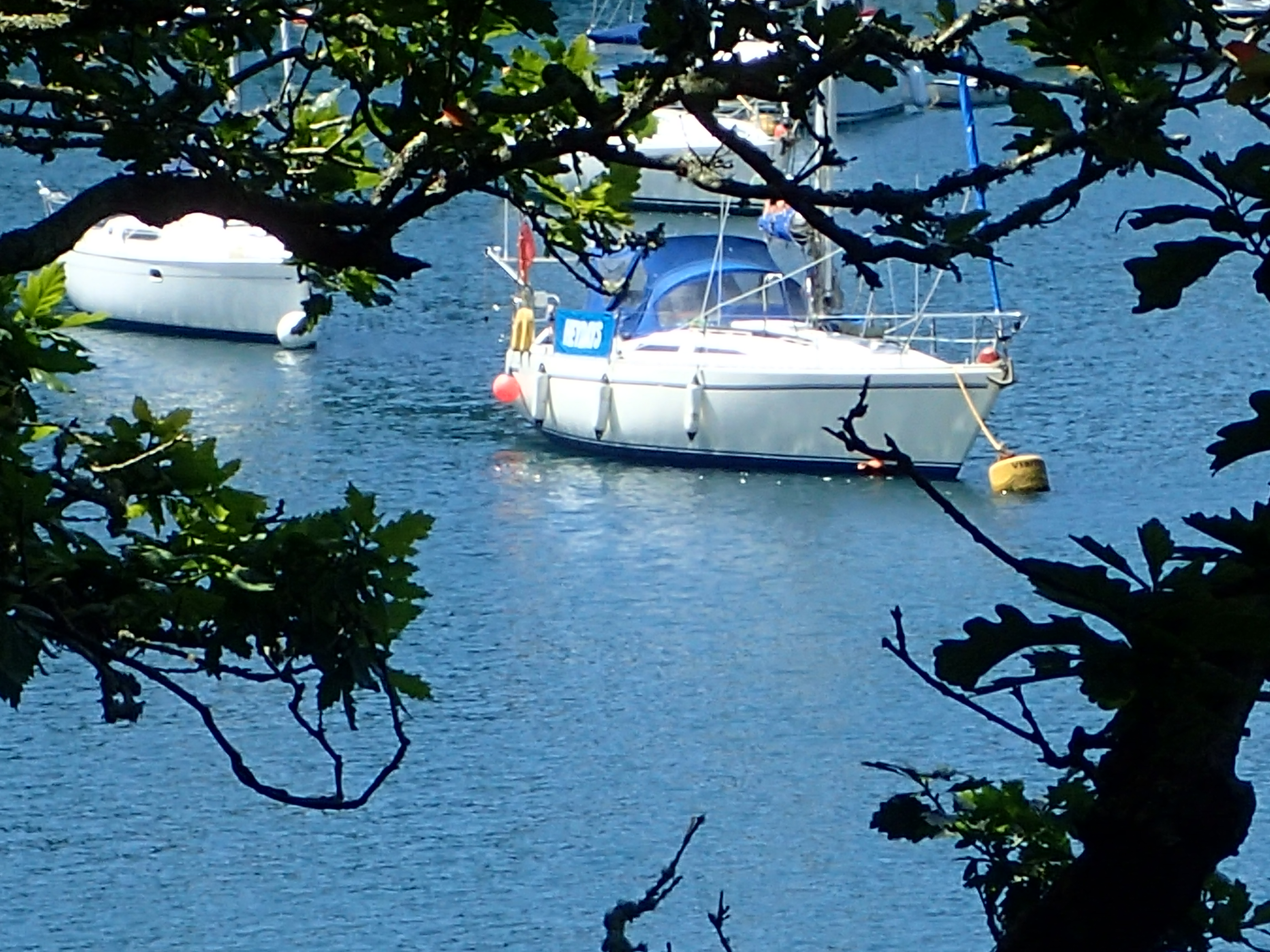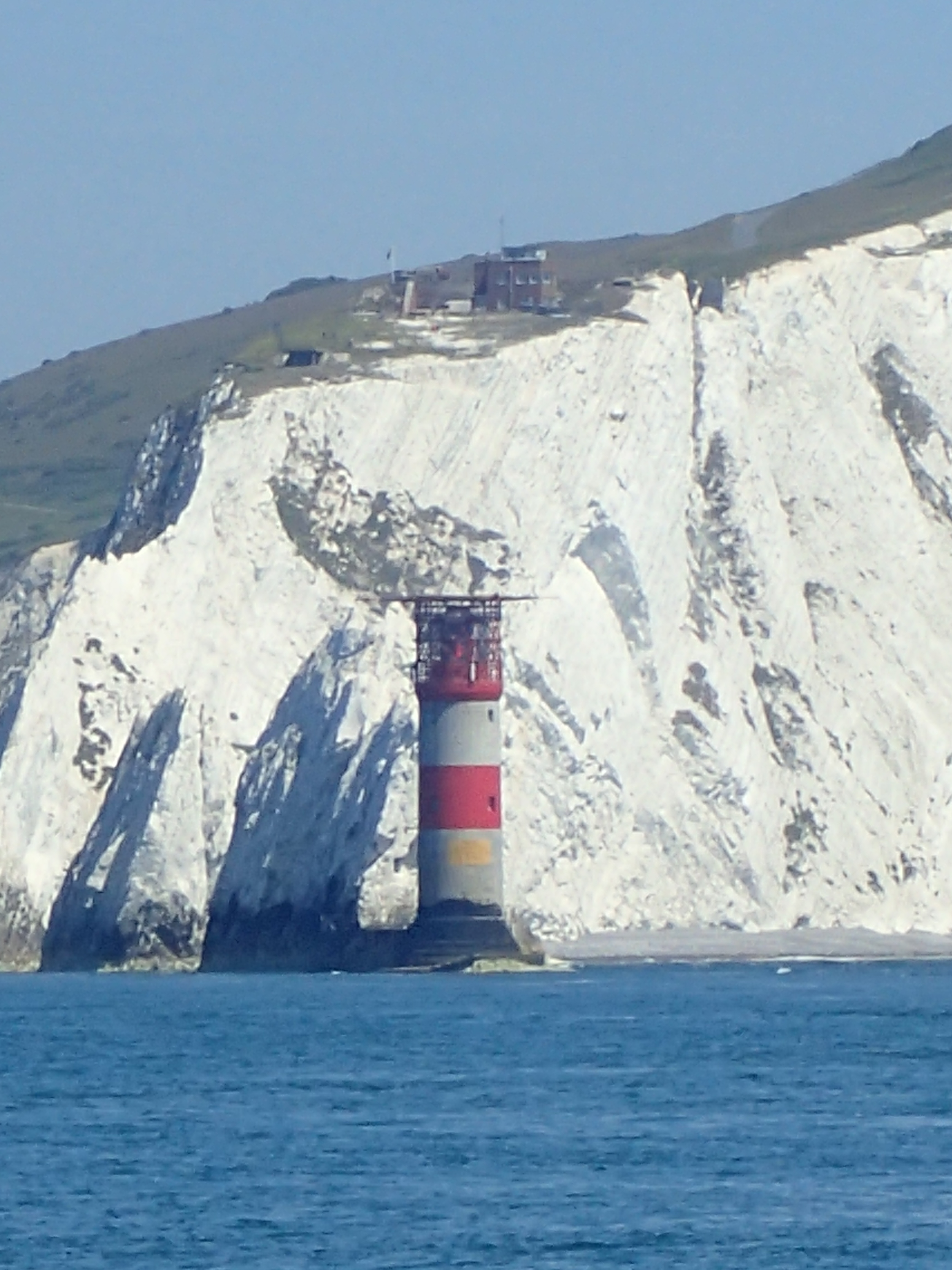 We decide to call it a day and head in for Portland, especially as the latest forecast for our bit of inshore waters talks about a strong wind warning. We are certainly right in the upper ends of a F6 with gusts well over. We head for the narrowish gap between the race and the western end of the shambles bank with just a genny left flying on a dead run. Even though we are some way clear, the water is still confused and very choppy, but then, all of a sudden, we are free and enter the relative calm of Portland Harbour. We are intending to anchor but a lot of inviting and empty buoys beckon and soon we are riding out the worst of the weather courtesy of the Royal Navy Sailing Association. There is something deeply satisfying eating a meal on board while the weather does its thing outside, knowing that we are snug and secure.