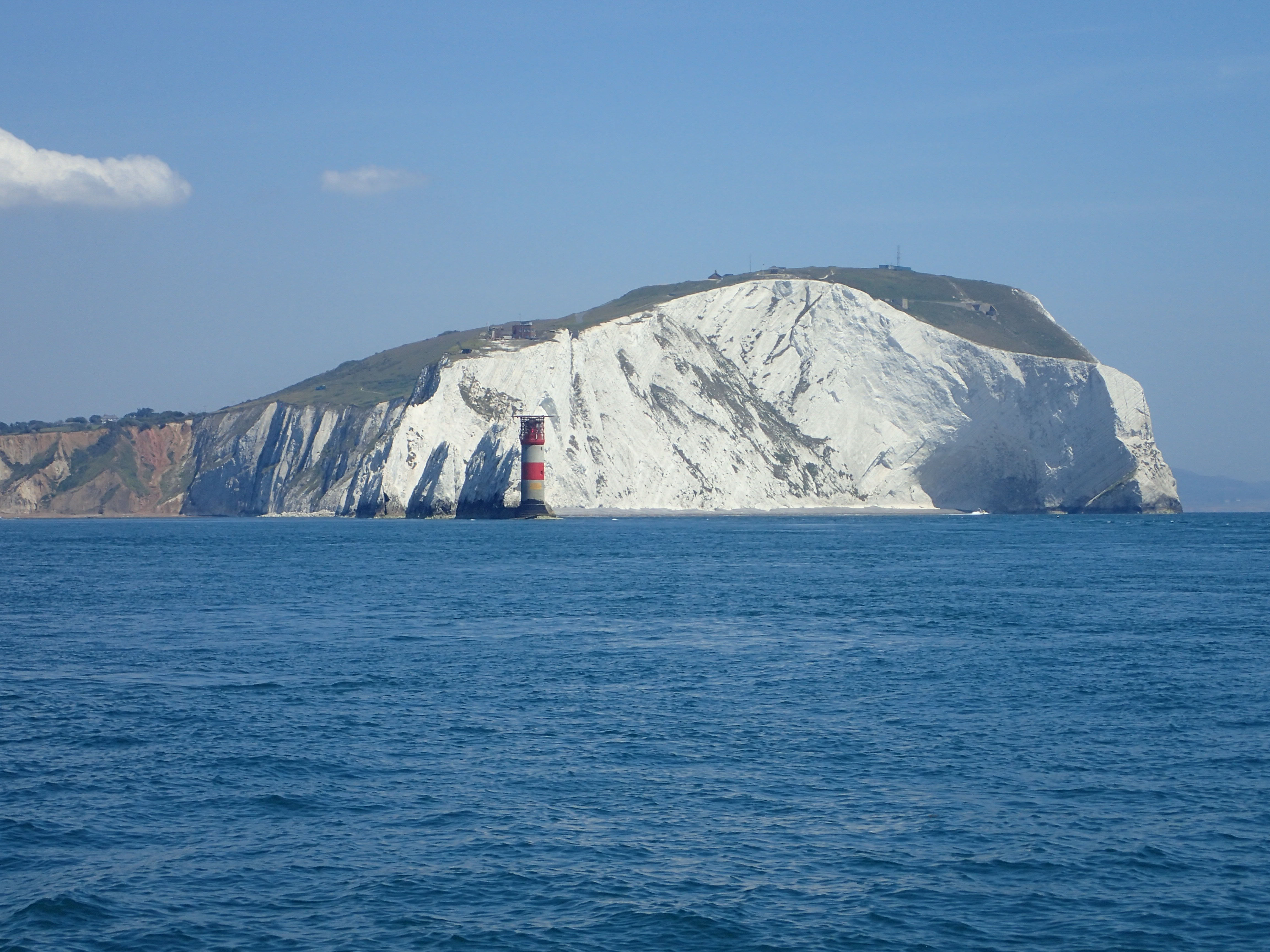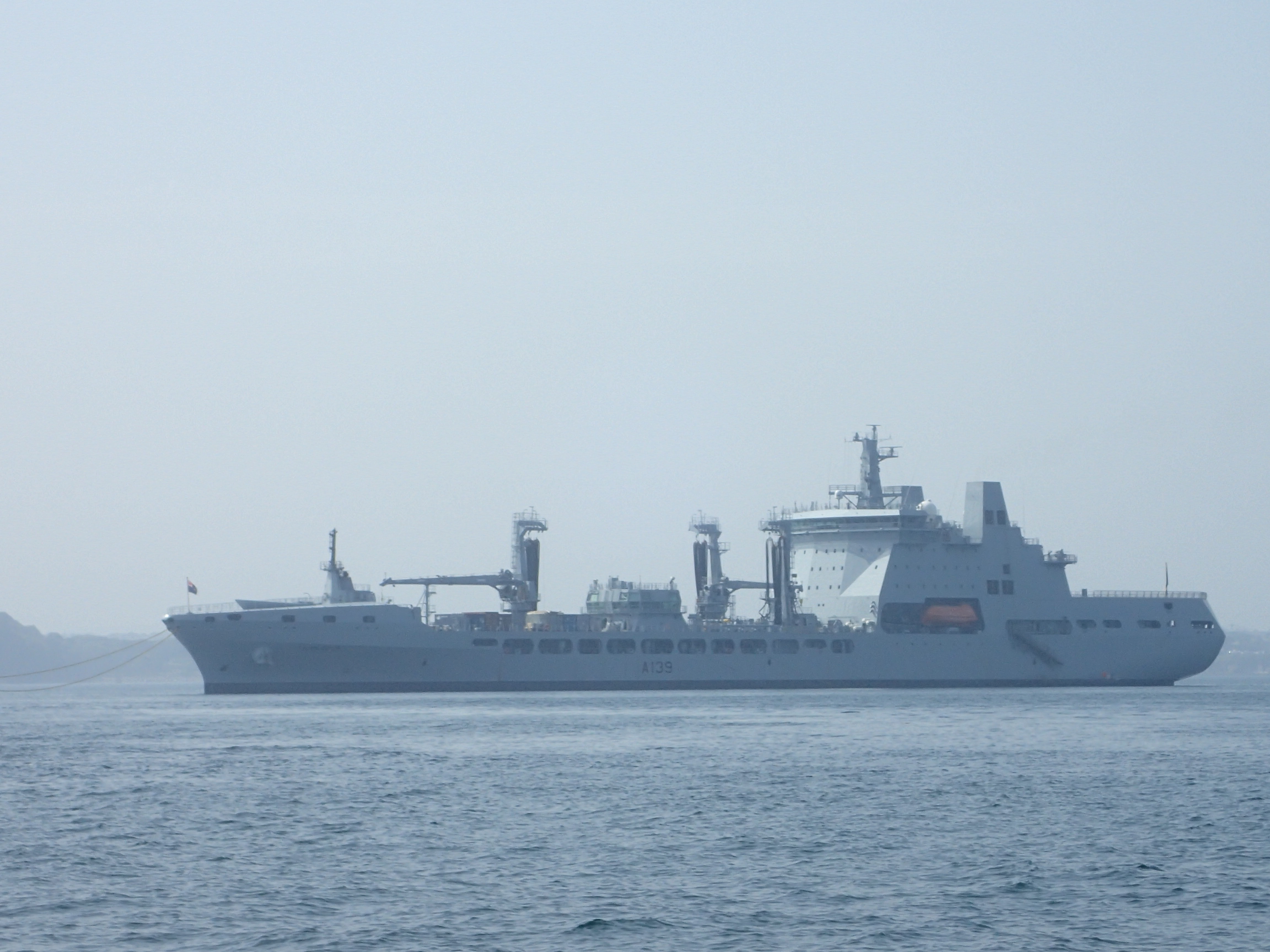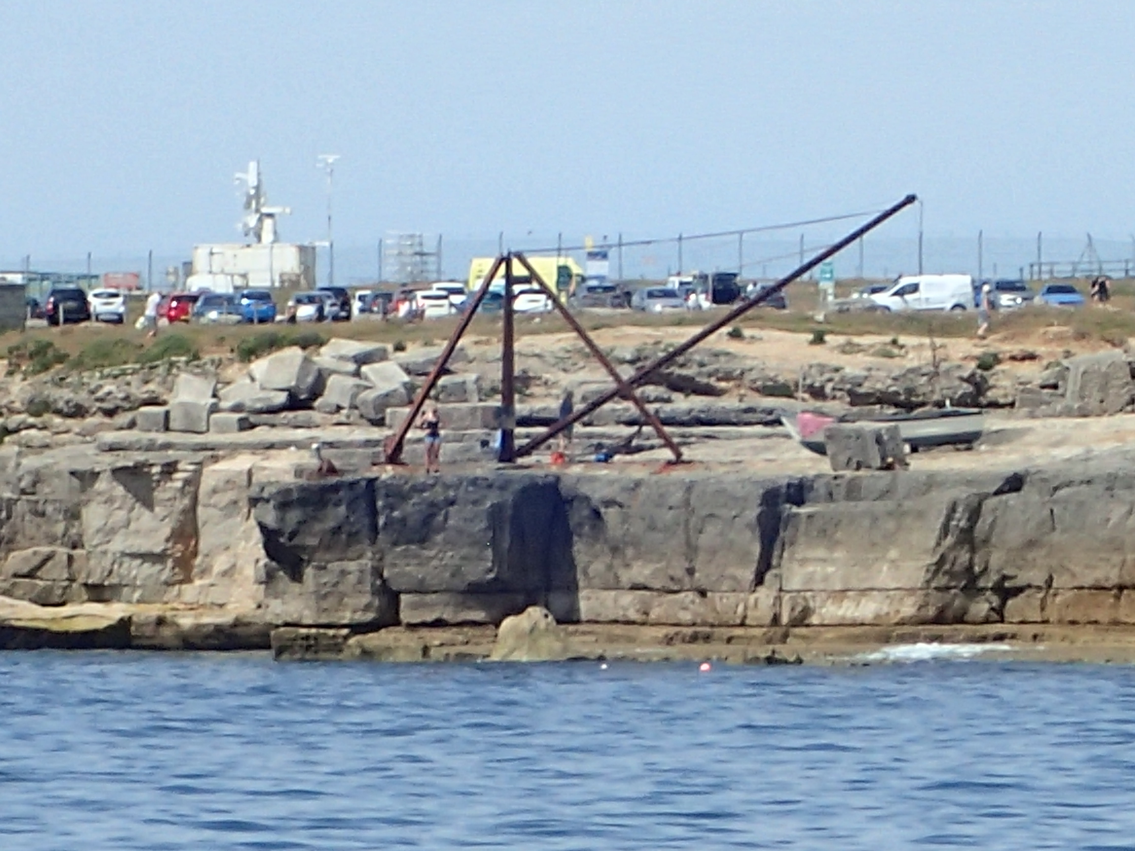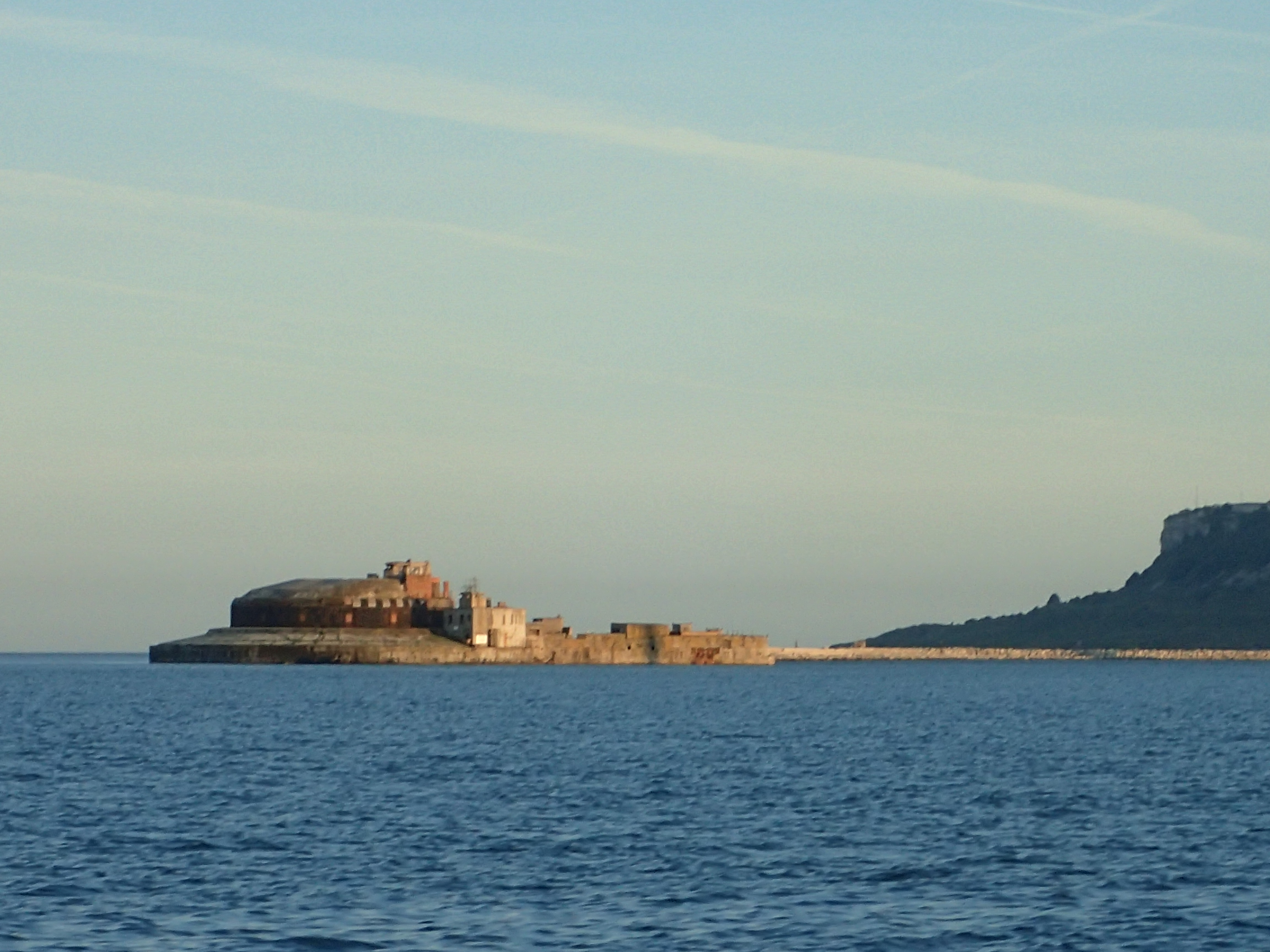 We decide to call it a day and head in for Portland, especially as the latest forecast for our bit of inshore waters talks about a strong wind warning. We are certainly right in the upper ends of a F6 with gusts well over. We head for the narrowish gap between the race and the western end of the shambles bank with just a genny left flying on a dead run. Even though we are some way clear, the water is still confused and very choppy, but then, all of a sudden, we are free and enter the relative calm of Portland Harbour. We are intending to anchor but a lot of inviting and empty buoys beckon and soon we are riding out the worst of the weather courtesy of the Royal Navy Sailing Association. There is something deeply satisfying eating a meal on board while the weather does its thing outside, knowing that we are snug and secure.