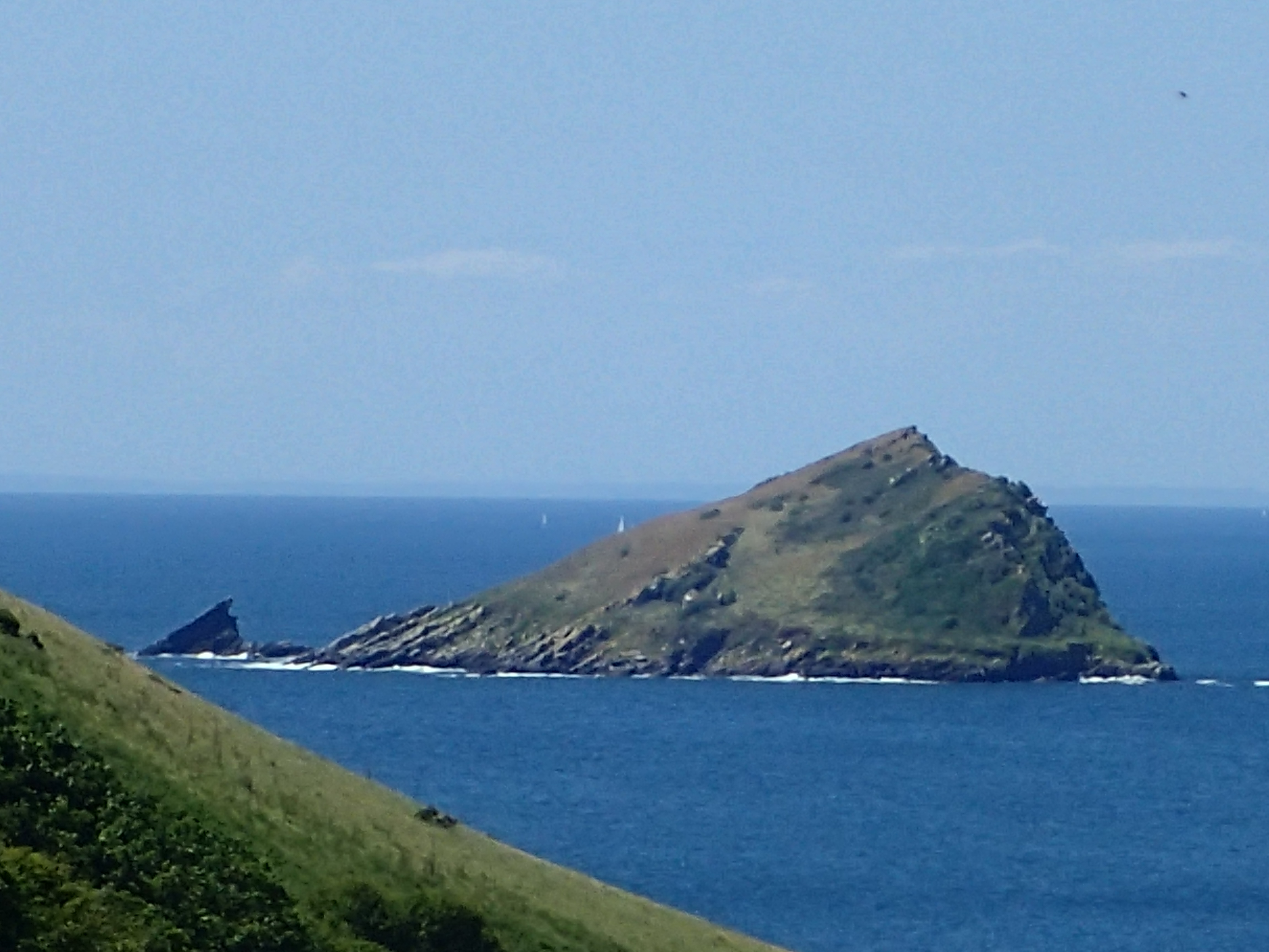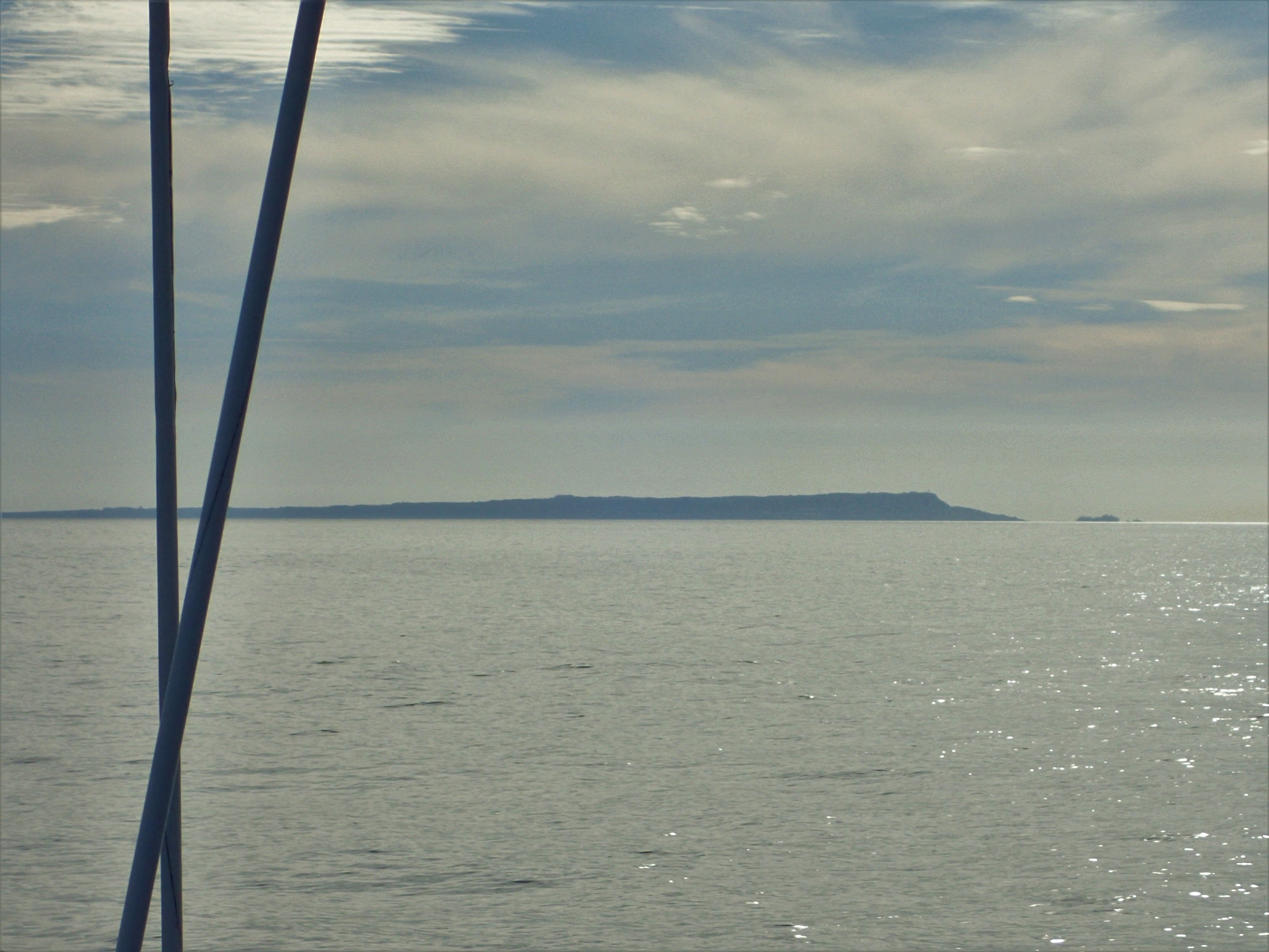 The wind in the morning turns out to be pretty much southerly which means a fine reach (fast) instead of a near dead run (sloppy and swelly). However once we are out there, it is very much a steady F6 and certainly not the F4 to 6 promised. With gusts at the top end of 6, it doesn’t take long for the sea to kick up and be only just aft of the beam. This is a day for keeping at least 5 miles south of the Bill and we are comforted by a couple of others who appear to have the same idea. With two reefs in the main and a couple of rolls in the genoa, Heydays is wonderfully balanced. She always responds well to a slightly smaller press of sail than heeling over on her ear. Only the occasional wave knocks the bows or the stern around. 6 hours sees us due south of the Bill and we can see the breaking water in the race.