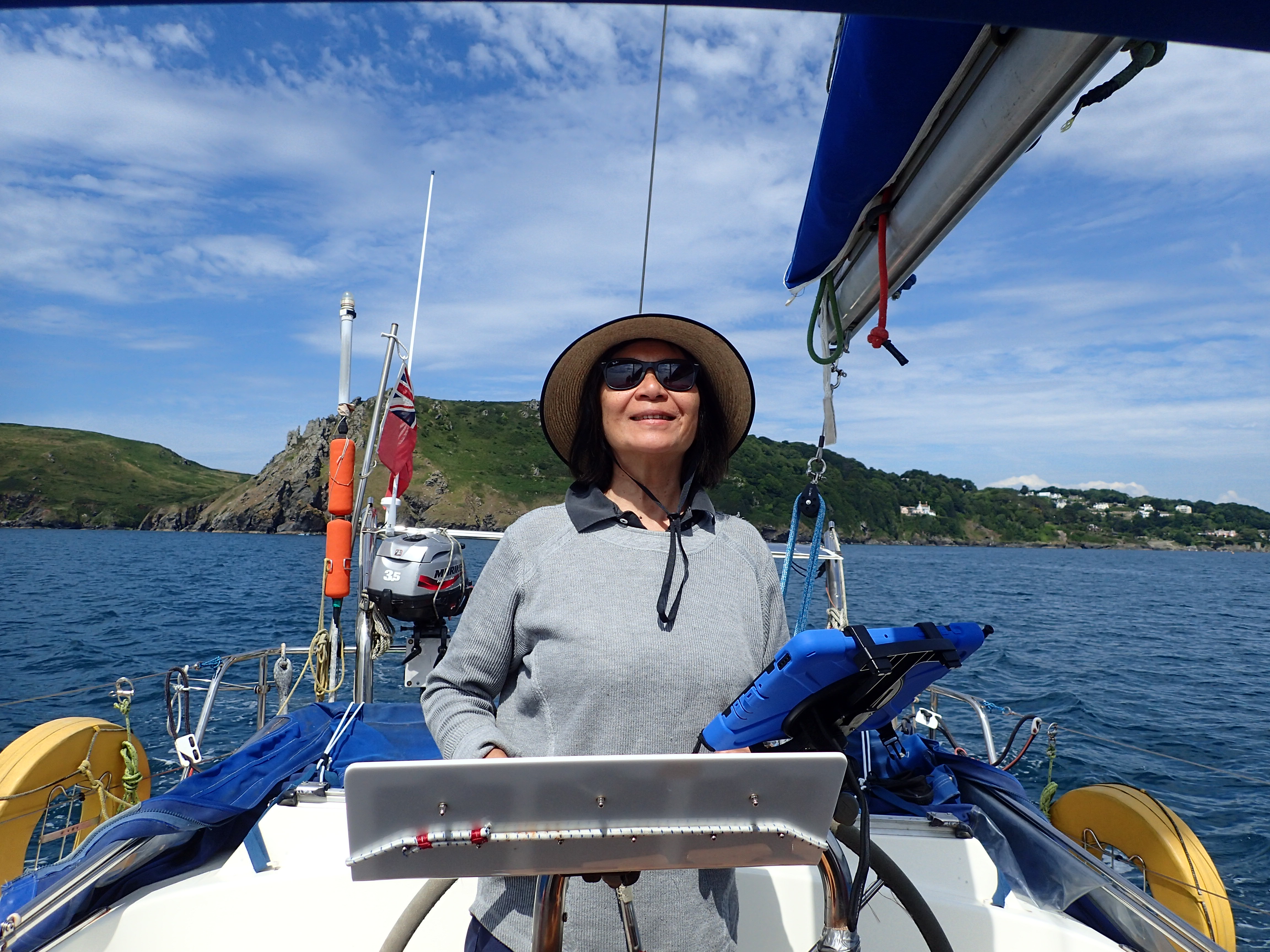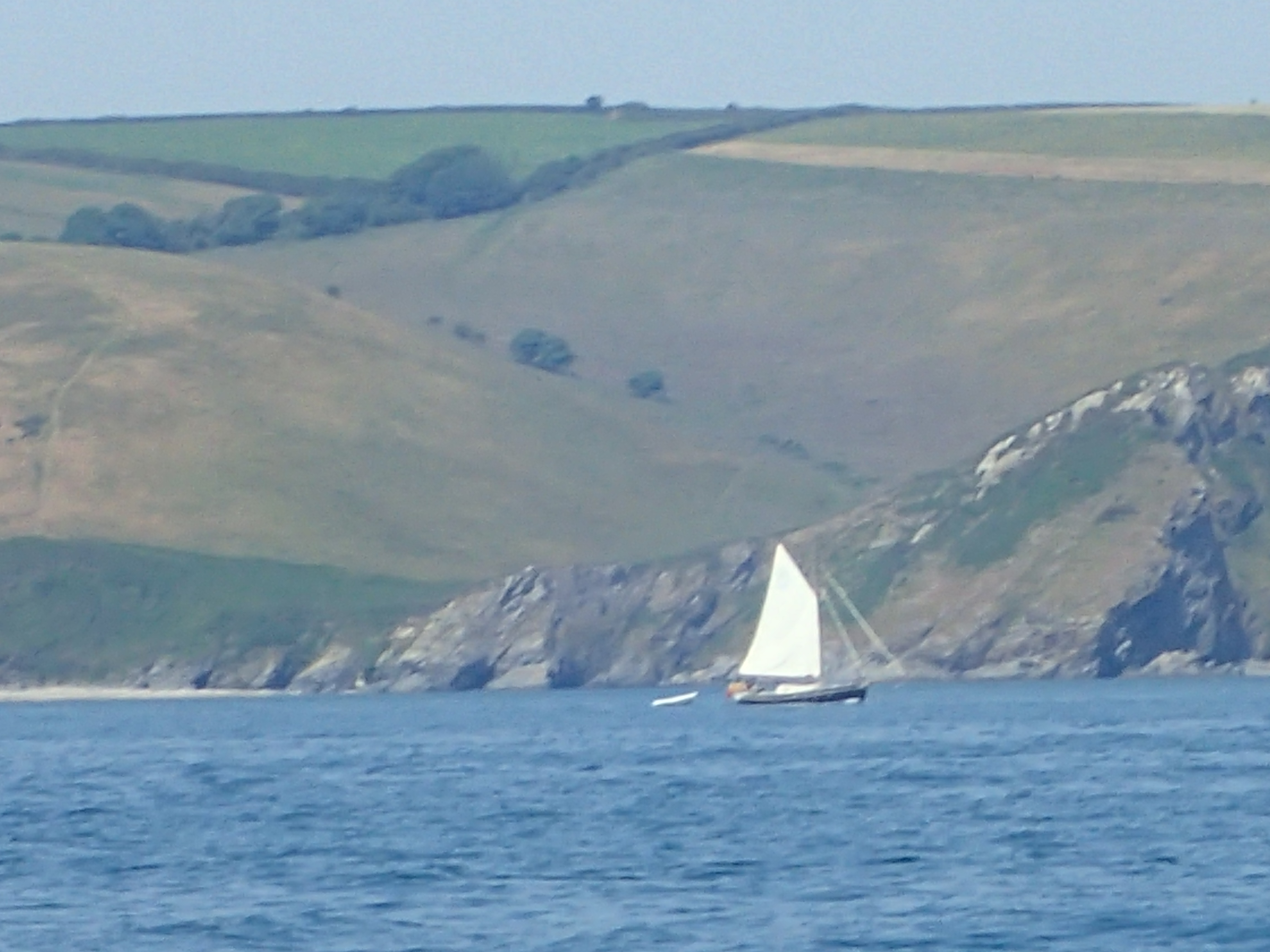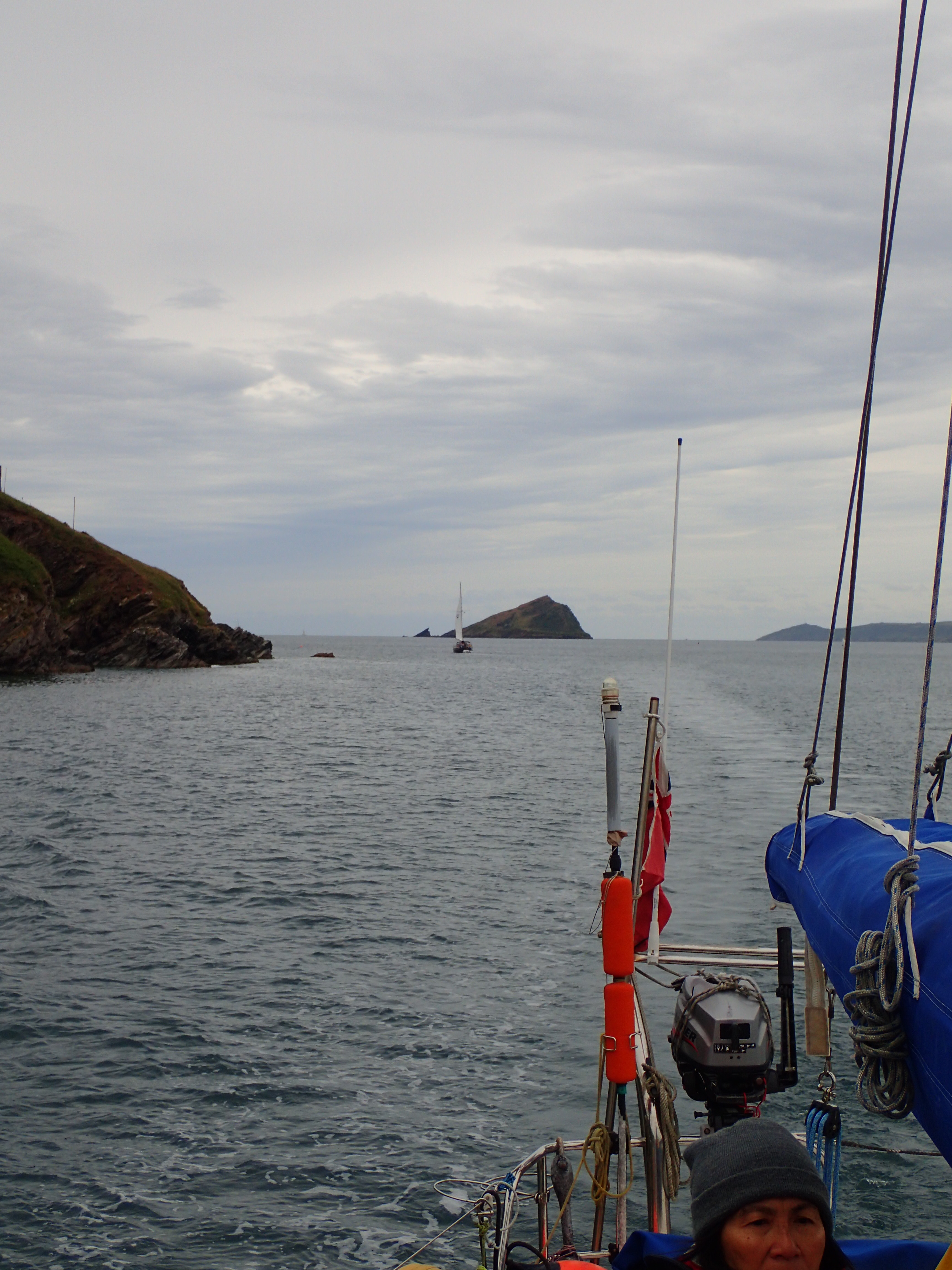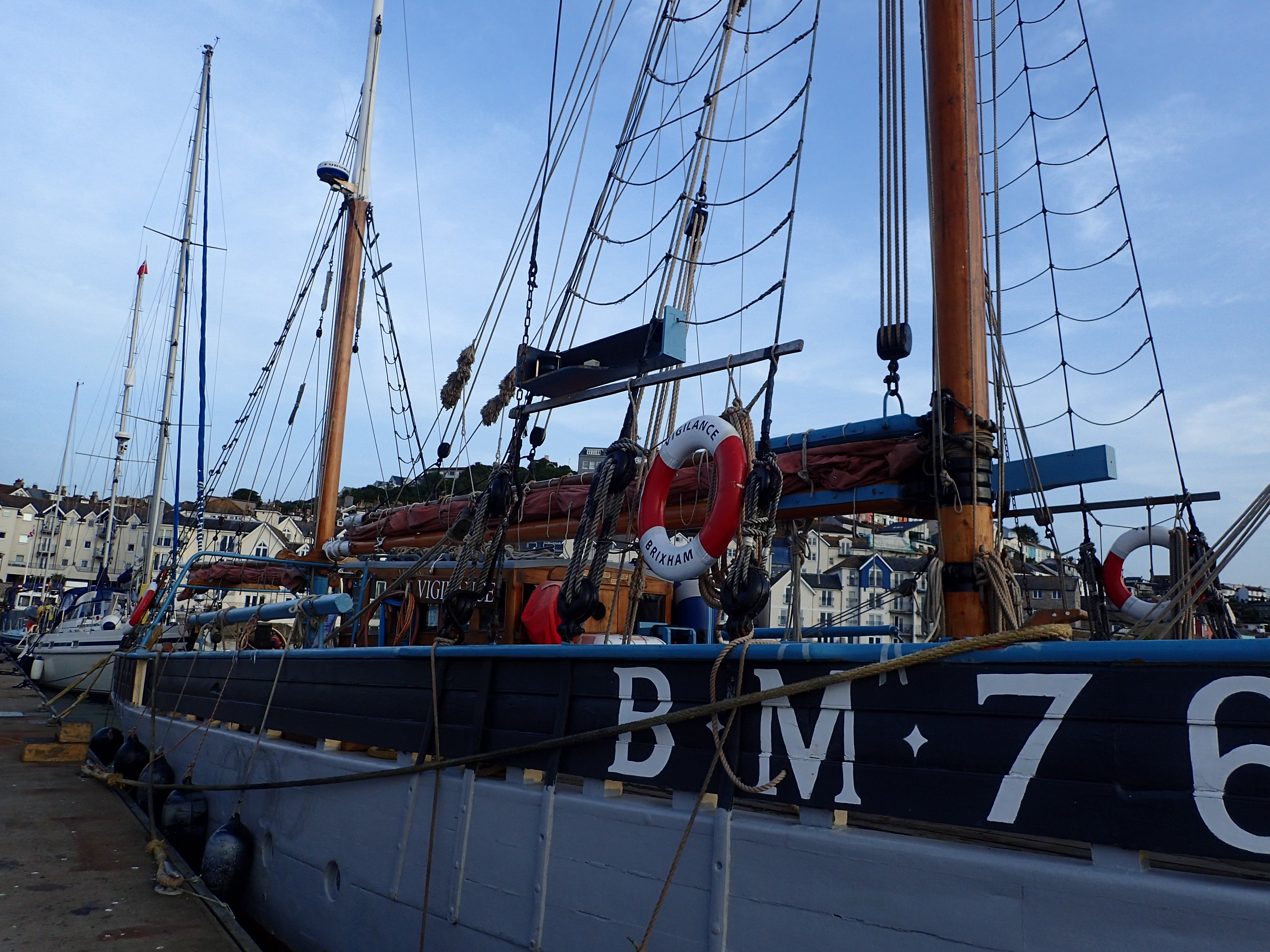Just round the two headlands of Bolt Head and Start point is Brixham which two of us visited on the way west. Again, the winds are fickle and we have time to read, mend and generally laze around as the red and ancient Devon cliffs roll past.