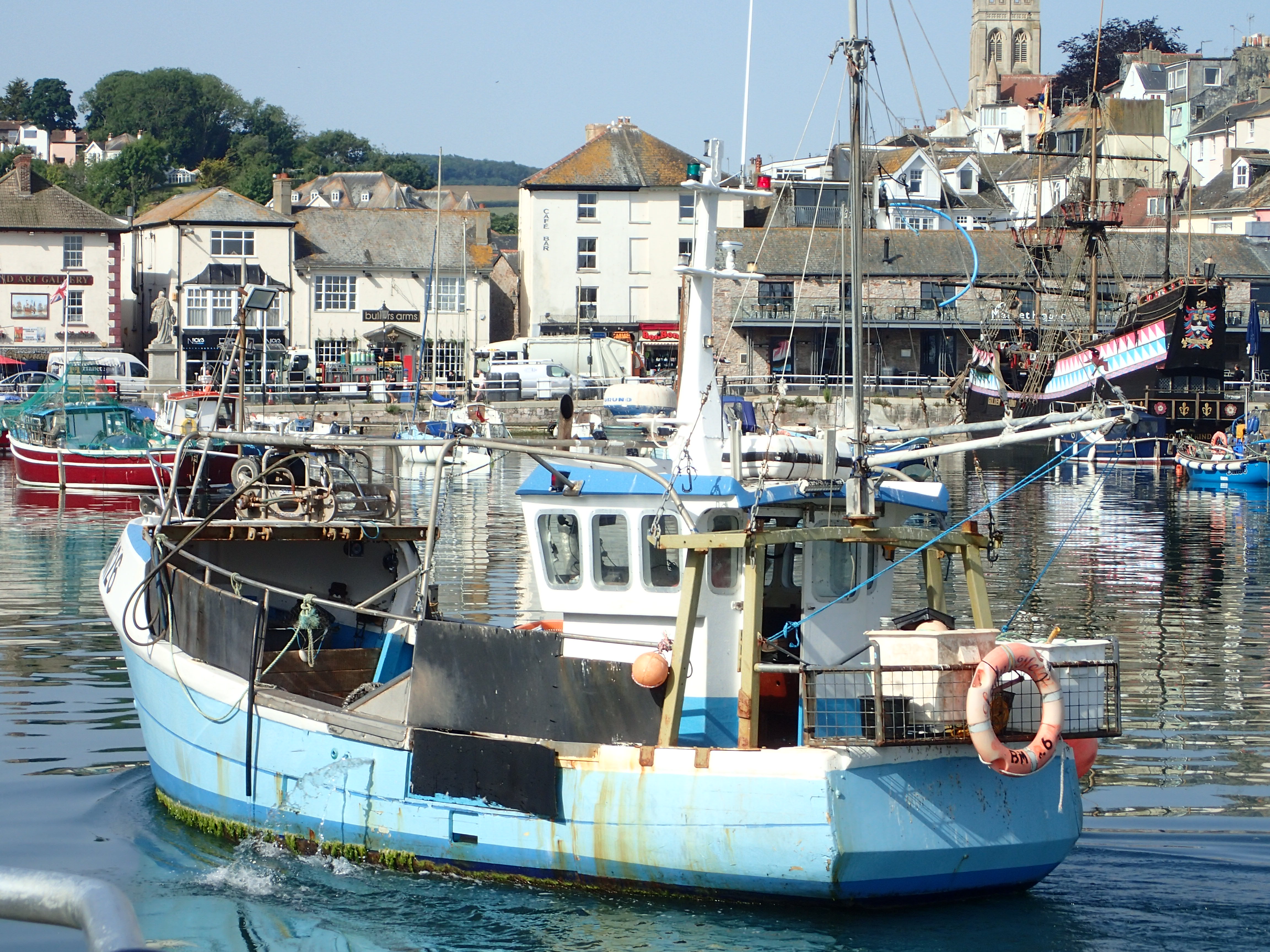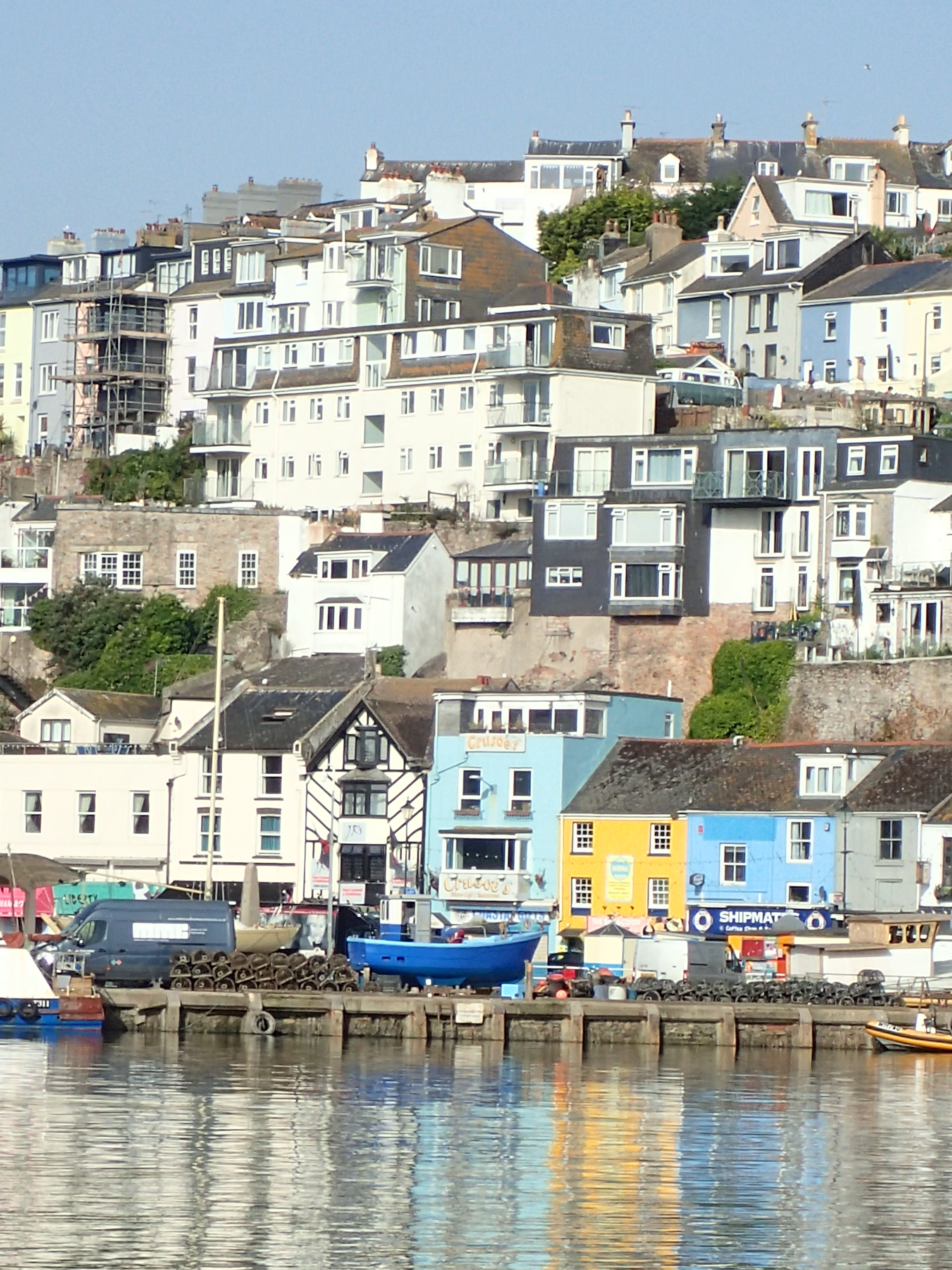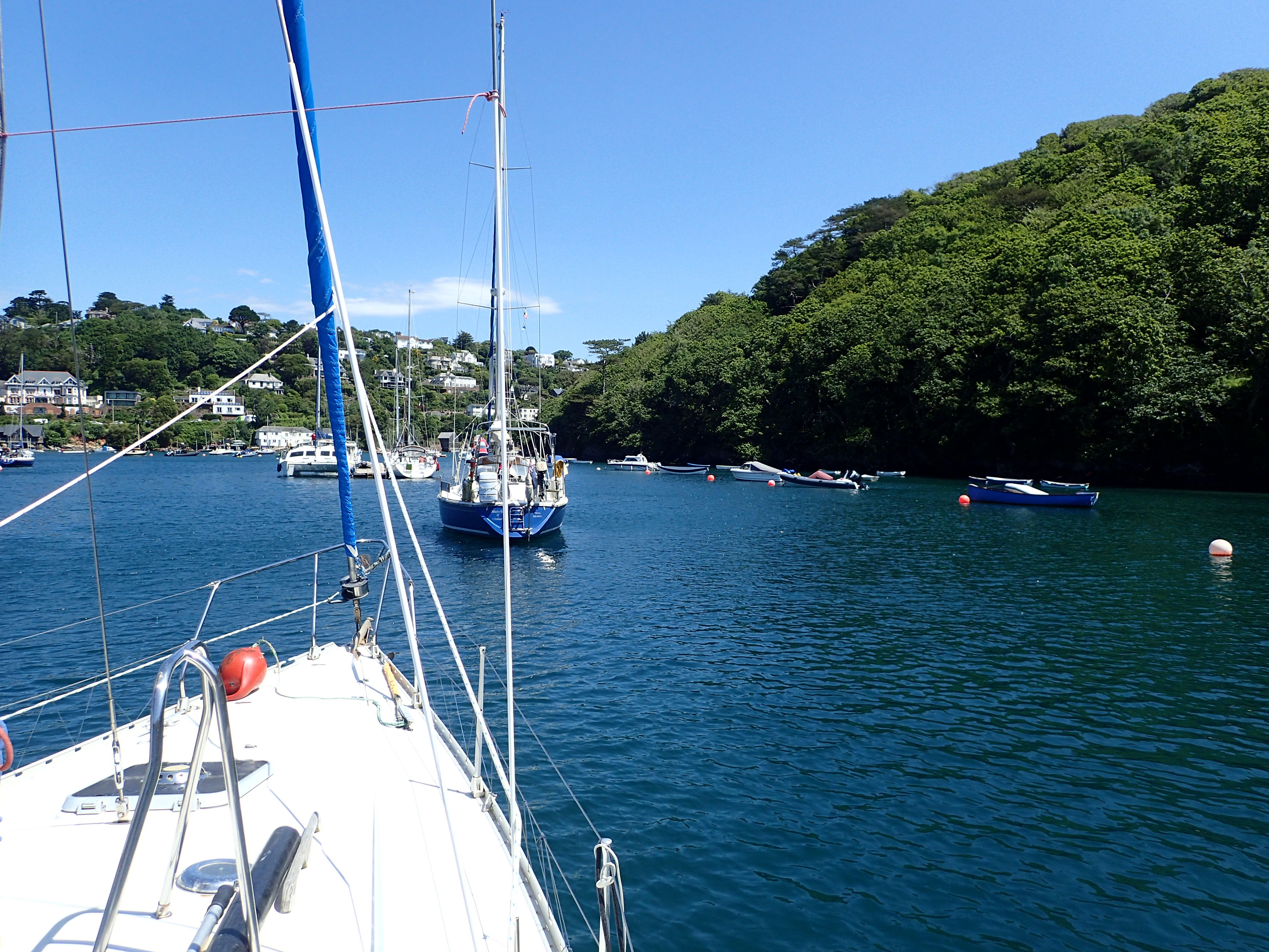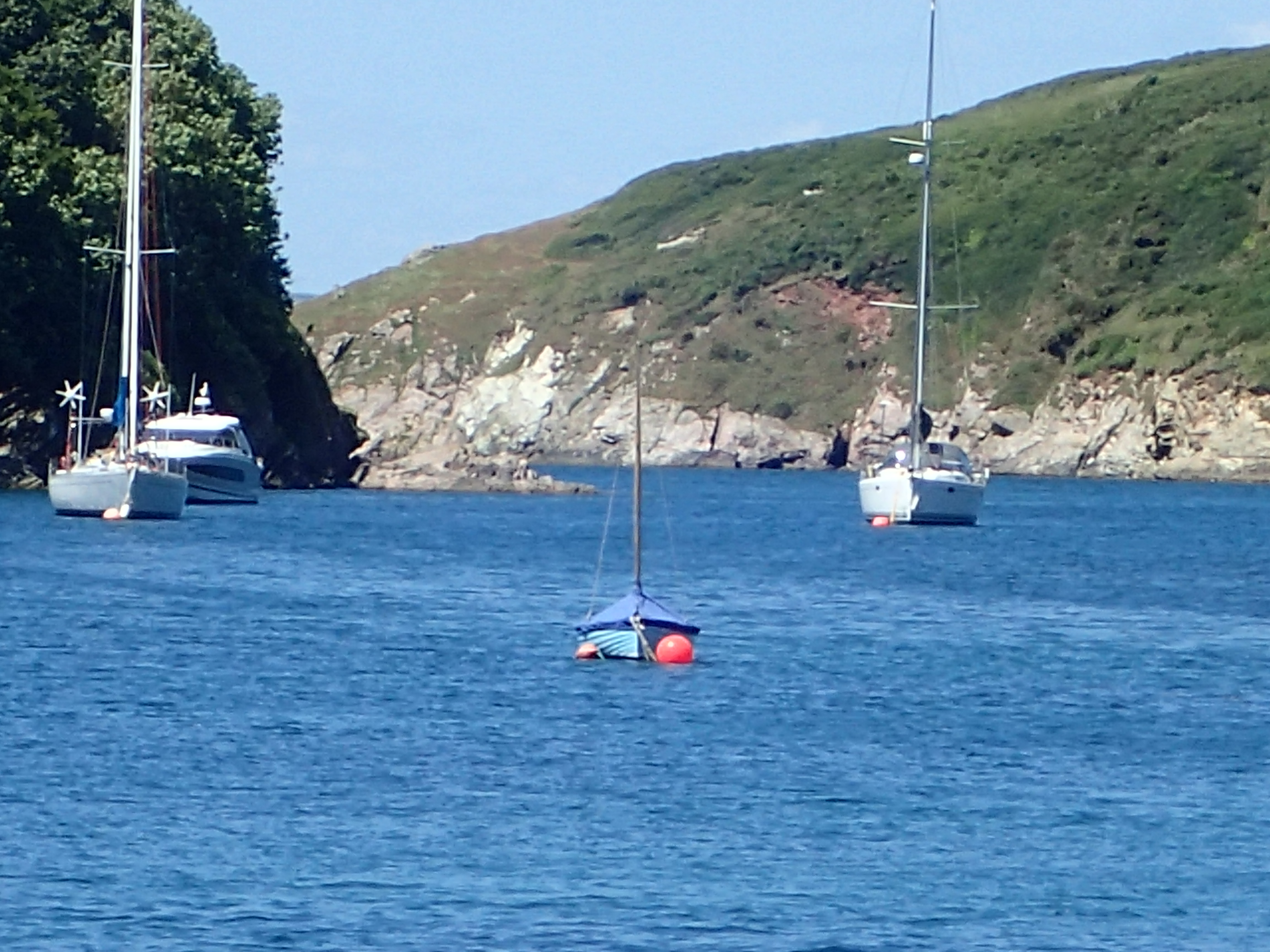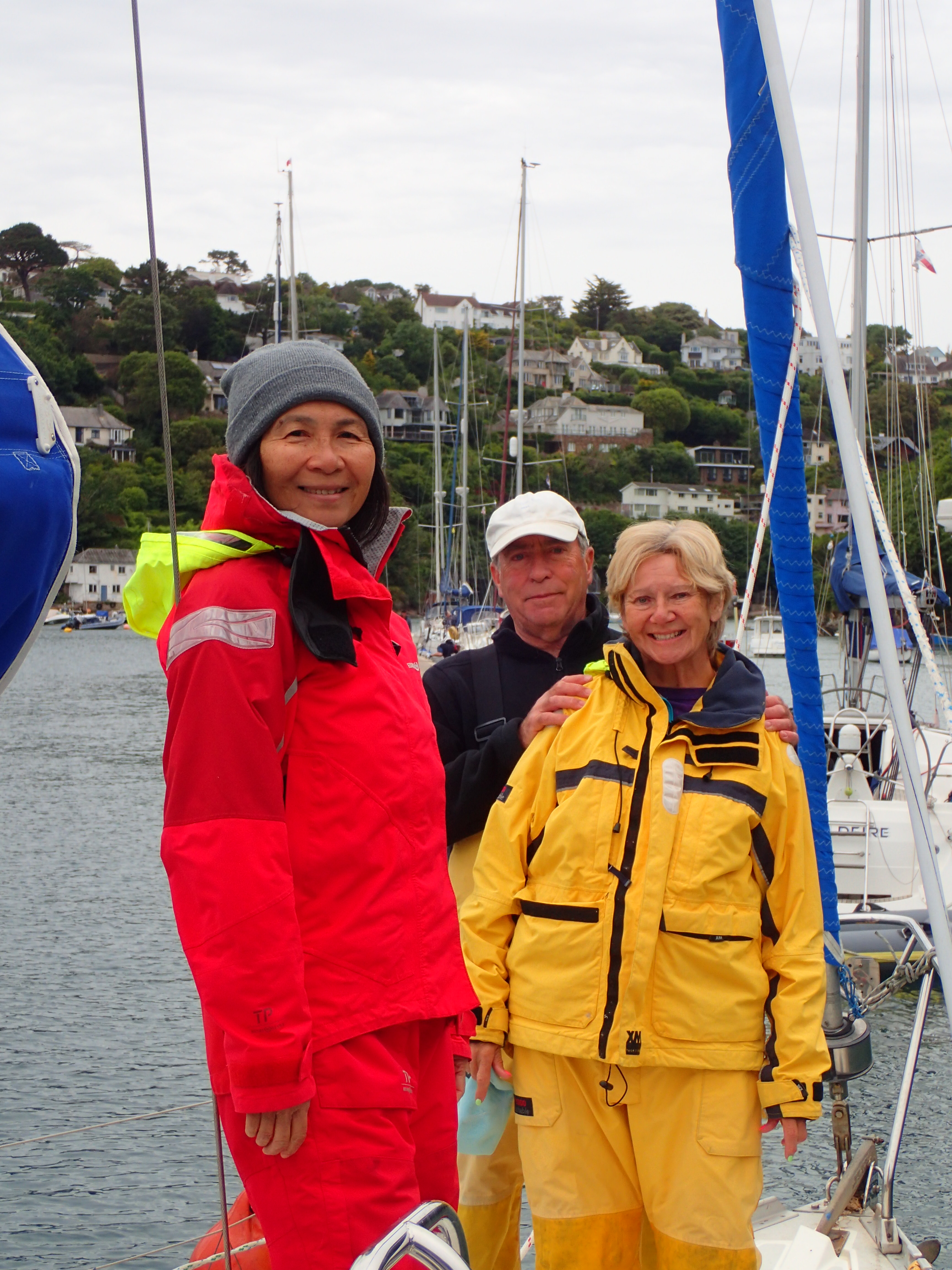 Just round the two headlands of Bolt Head and Start point is Brixham which two of us visited on the way west. Again, the winds are fickle and we have time to read, mend and generally laze around as the red and ancient Devon cliffs roll past.