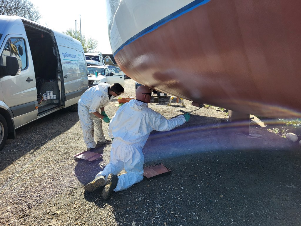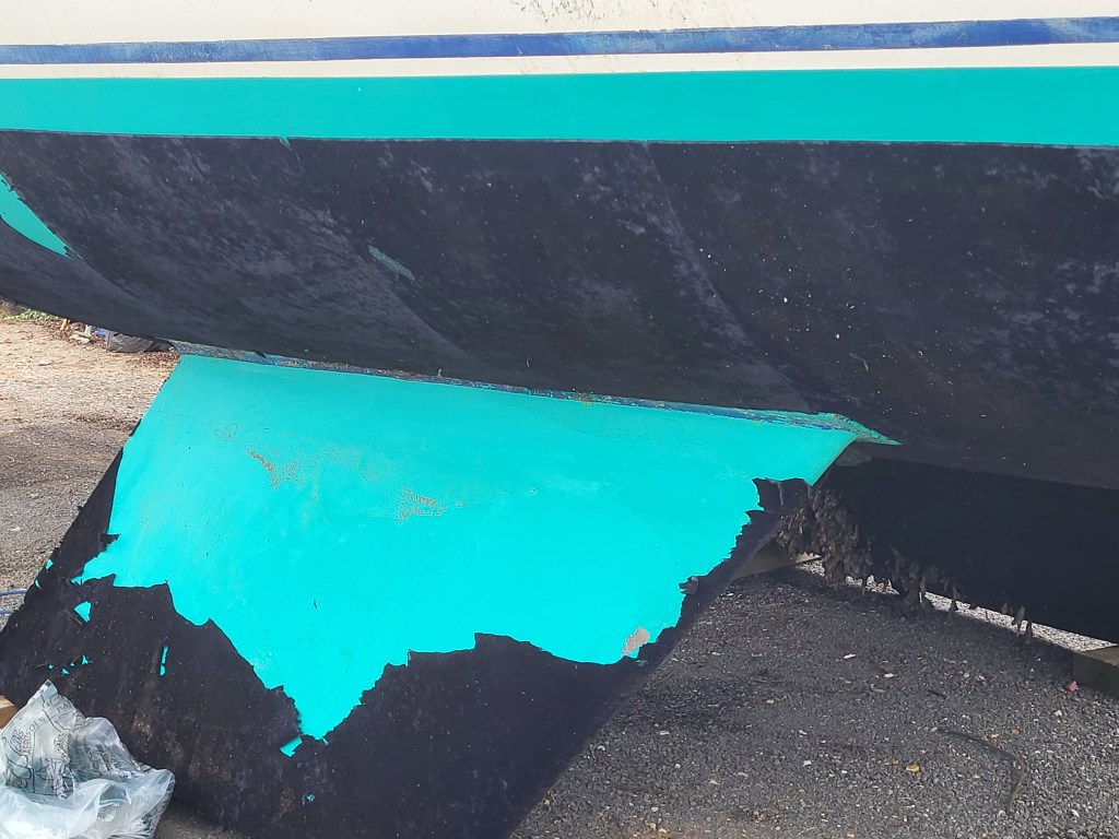 The solution was a complete sandblast, re-epoxy and finally a coat of copper coat which is a tried and trusted reasonably green alternative to traditional antifouls.