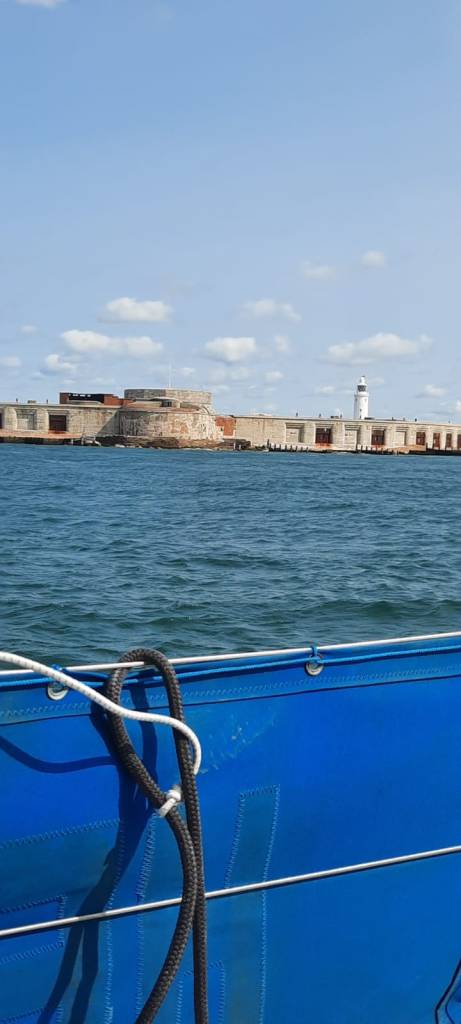 We leave the river behind in a steady F5 from the NW and zoom through Hurst Narrows and the old Henry VIII fort on the first of the ebb tide.