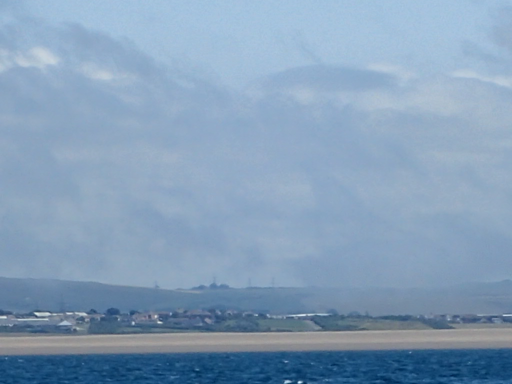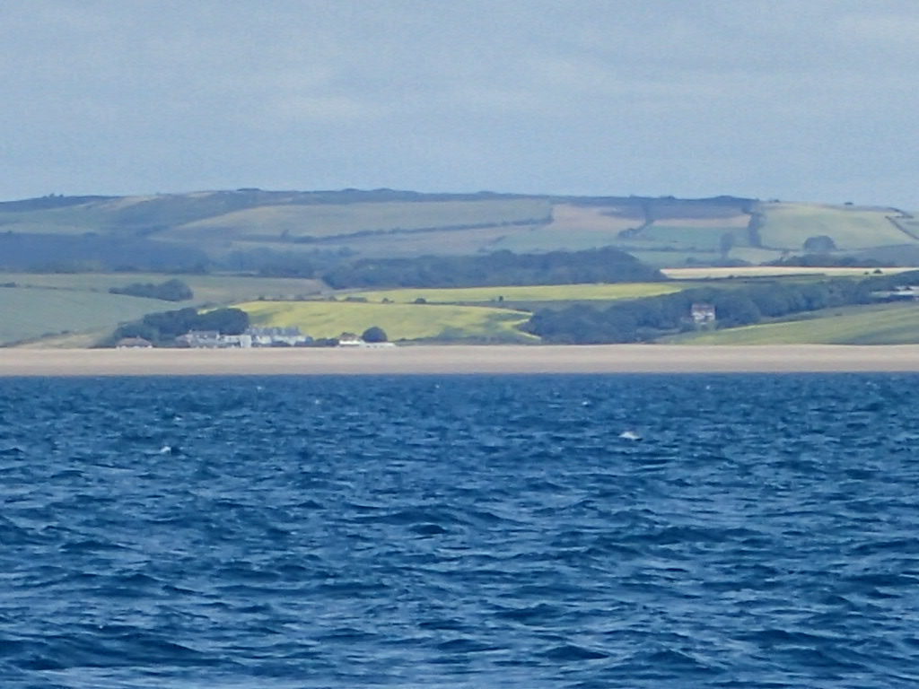 Fog horn out and radar on, but then within 10 minutes the fog lifts and we are back to sunshine and clear views of Chesil beach. The only sign of the fog is a dense cap over the top of Portland.