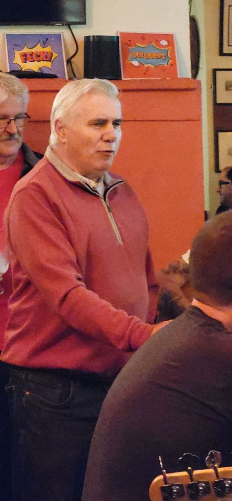 An older guy wanders in to be greeted by almost everyone and stands unobtrusively near us. As the songs progress, it turns out that his voice is way more than just another drunk punter belting out tunelessly. Sure enough he soon gets the call and joins the group to sing The Contender….a gloriously melancholic piece about a local boxer from Youghal who loves women and whiskey just a little to much….