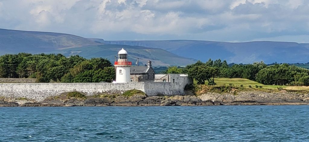 With Wicklow now astern, we can start to see the headland of Dun Laogharie and beyond it, on the other side of Dublin Bay, the big lump of land that is Ben of Howth. We start to keep a watchful eye for ferries and larger stuff, both from Dun Laogharie and from Dublin itself.