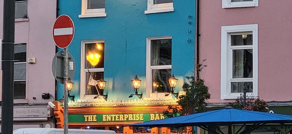 In the end, we stay and cook dinner before heading off to find a drink….never a problem in Ireland, it seems. Hoping for some music, we are disappointed to see the musicians already packing up. The bartender though, points us in the direction of the Anchor, a very unprepossessing pub down a back street. It is rammed and there is a couple playing banjo and whistle. We manage to find some space at the back and settle in for what Captain Keating rather dismissively described as ‘fiddle de de’ music.
