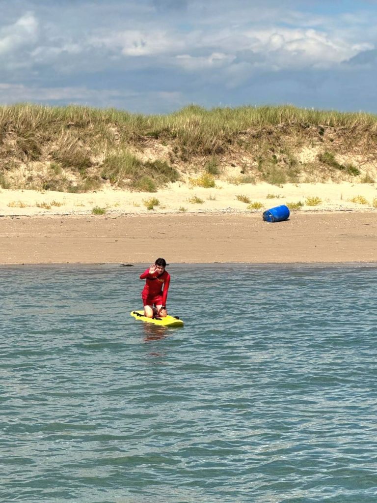 We seem to be the only other boat out on the water as we approach the shallow bar across the river entrance.